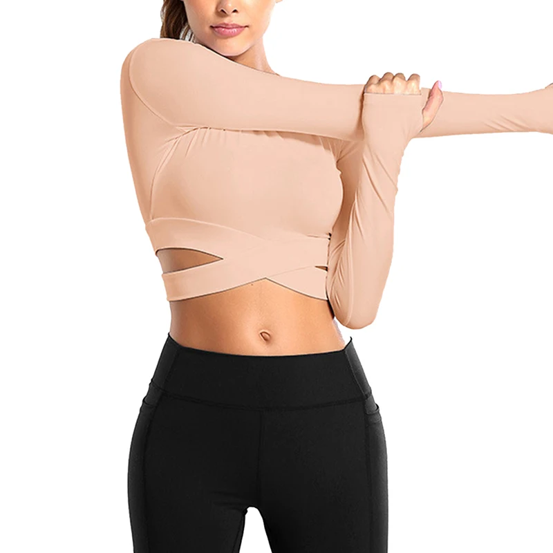 Женские футболки для йоги, сексуальные, с длинным рукавом, для бега...