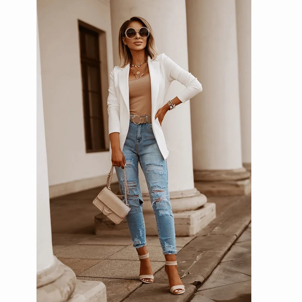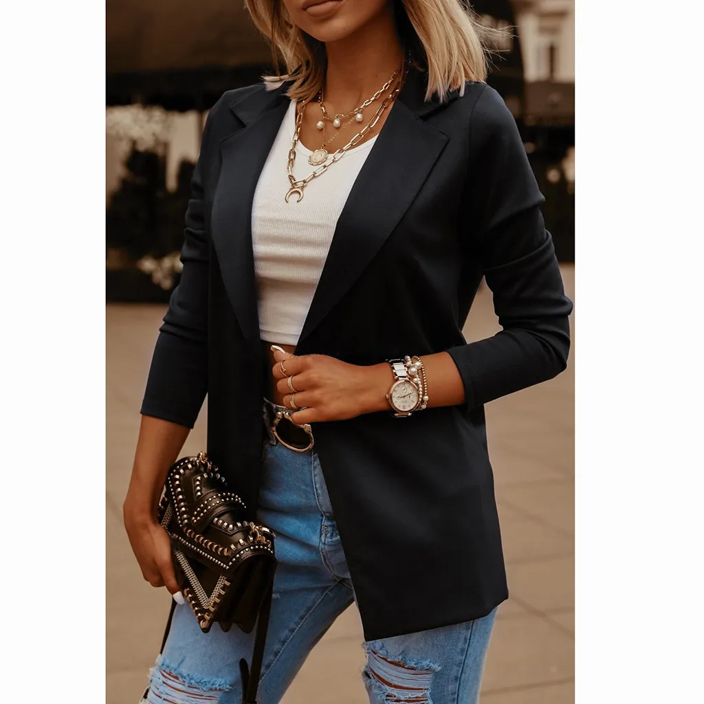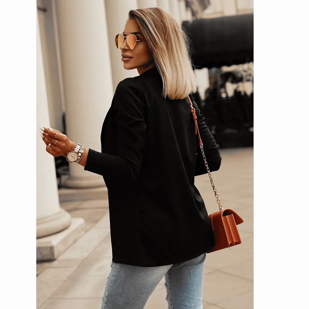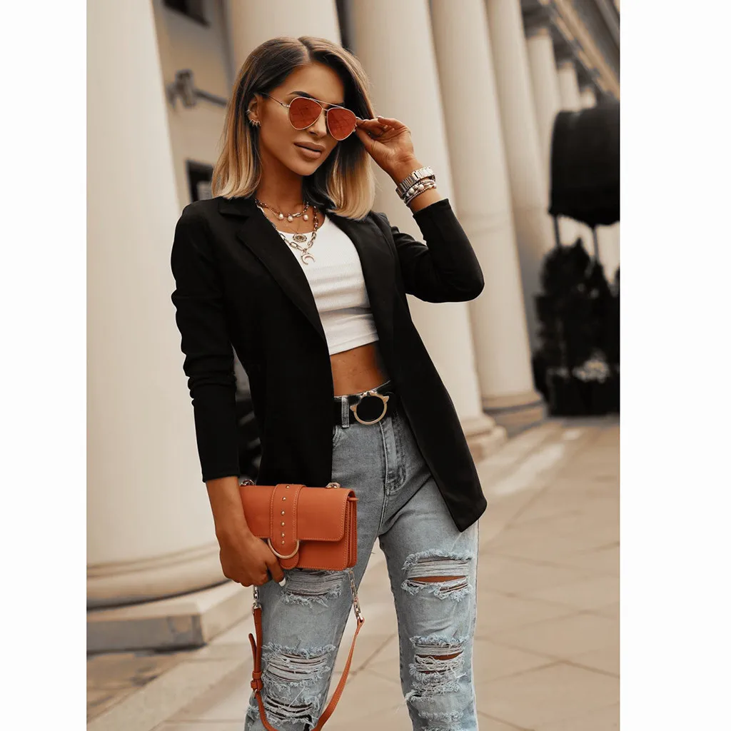Деловой Женский блейзер, Женский офисный приталенный Блейзер с длинным рукавом, повседневный однотонный строгий пиджак, Женское пальто, Se6