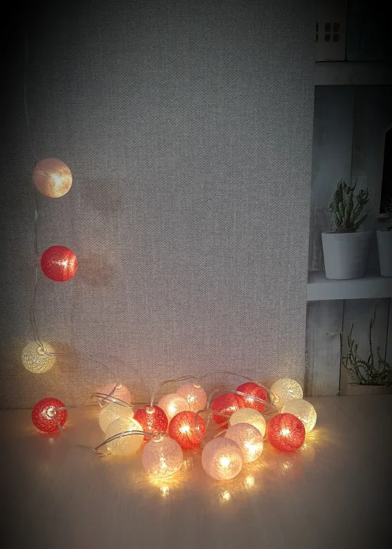 Гирлянда из 20 светодиодных гирлянд с хлопковыми шариками, сказочные осветительные полоски для праздника, Рождества, вечеринки, свадьбы, романтические украшения, гирлянда