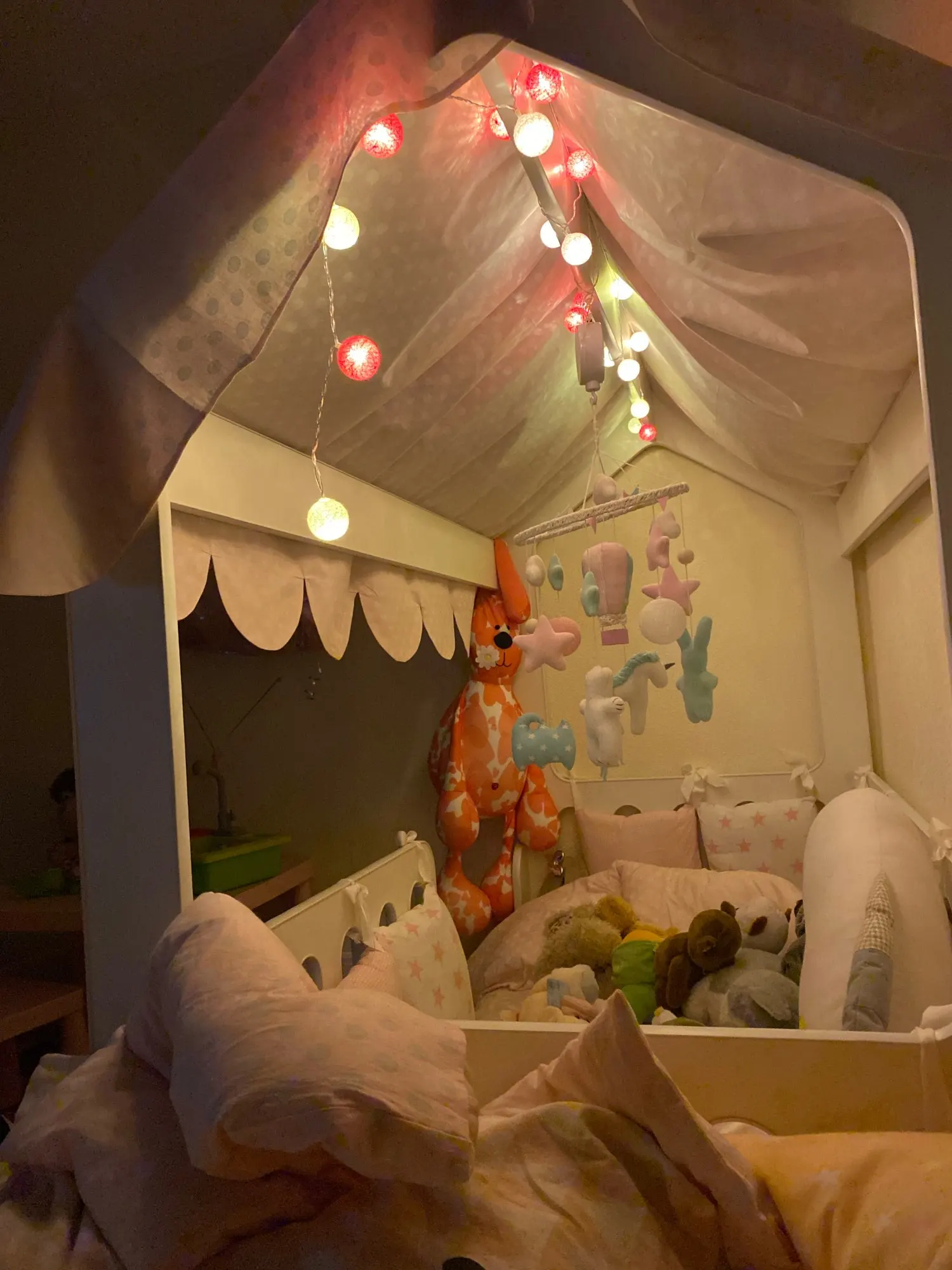 Такая милота! Взяли на батарейках, не прогадали, не занимает разетку. Всё работает без нареканий. Упаковано было хорошо. Брали для украшения детской кроватки подошло идеально, не моргает, светит ровно.