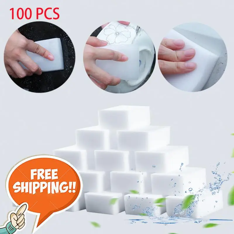 100 шт., меламиновые губки, волшебная губка, ластик, кухонная меламиновая губка, очищающая губка для уборки кухни, ванной комнаты