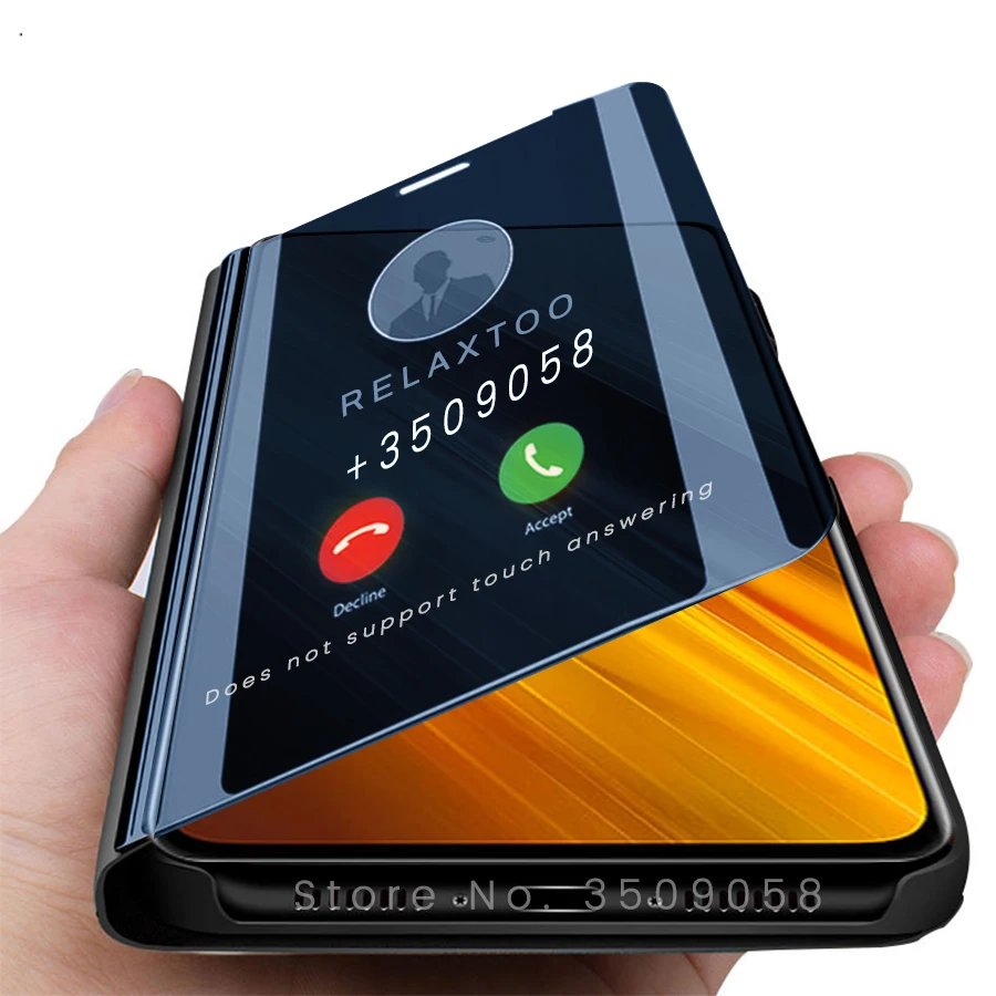 Fundas для xiaomi poco m3 pro зеркало смарт-окошком на лицевой пане...