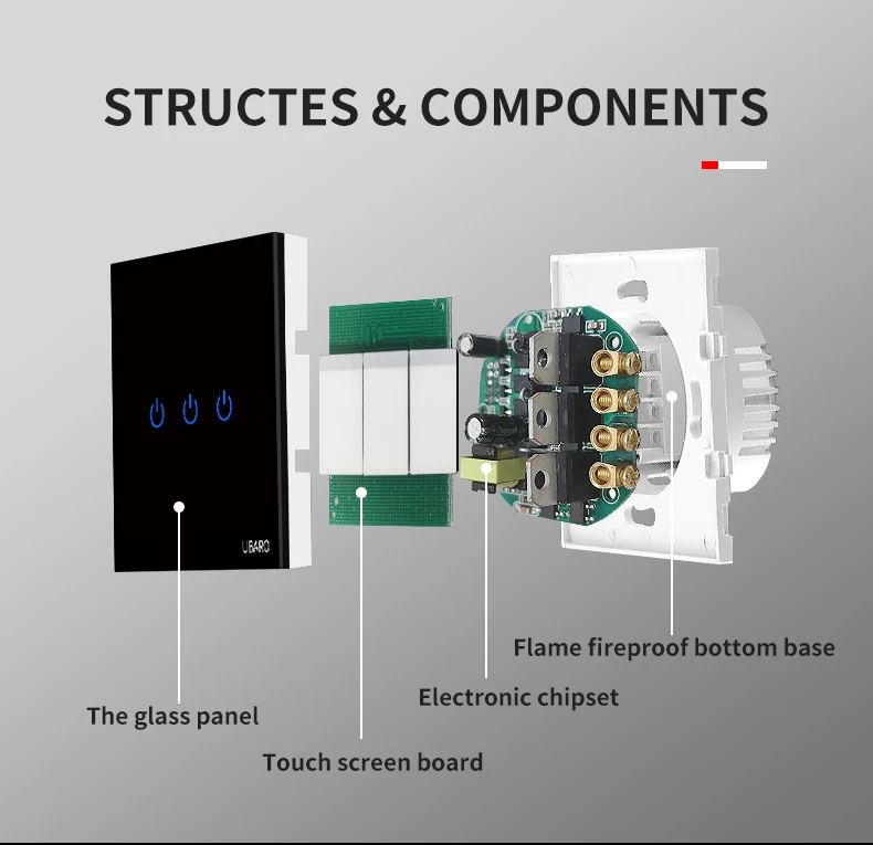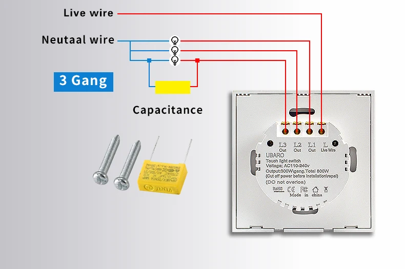 1 * сенсорный переключатель2 * длинный винт1 * Защитный конденсатор1 * Руководство пользователя1 * коробка для посылка