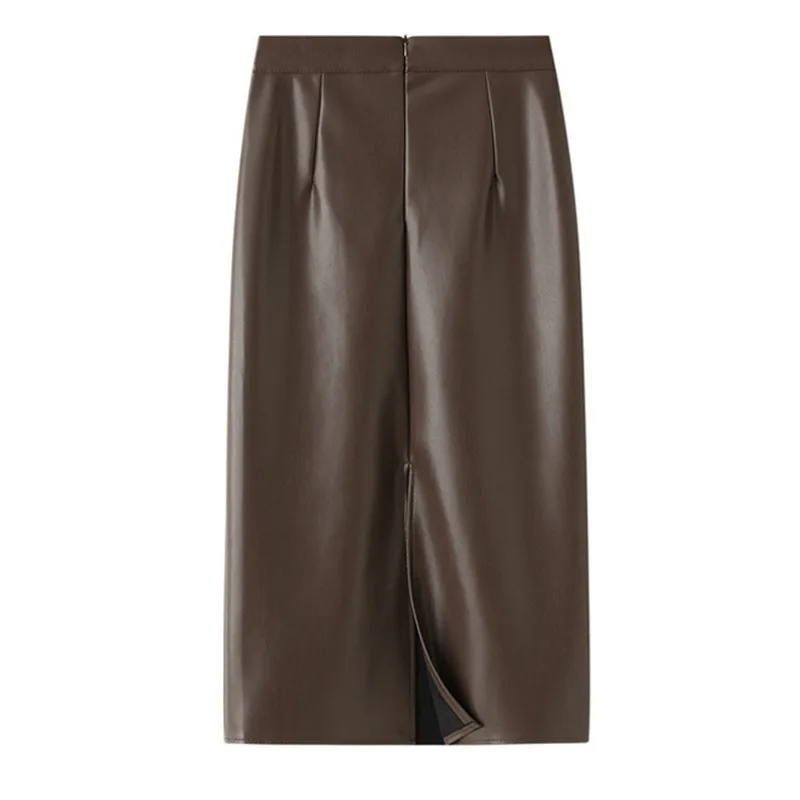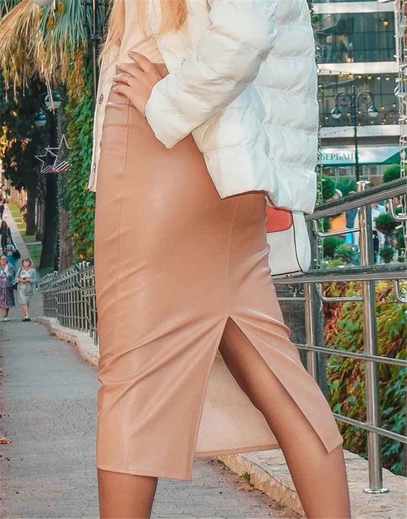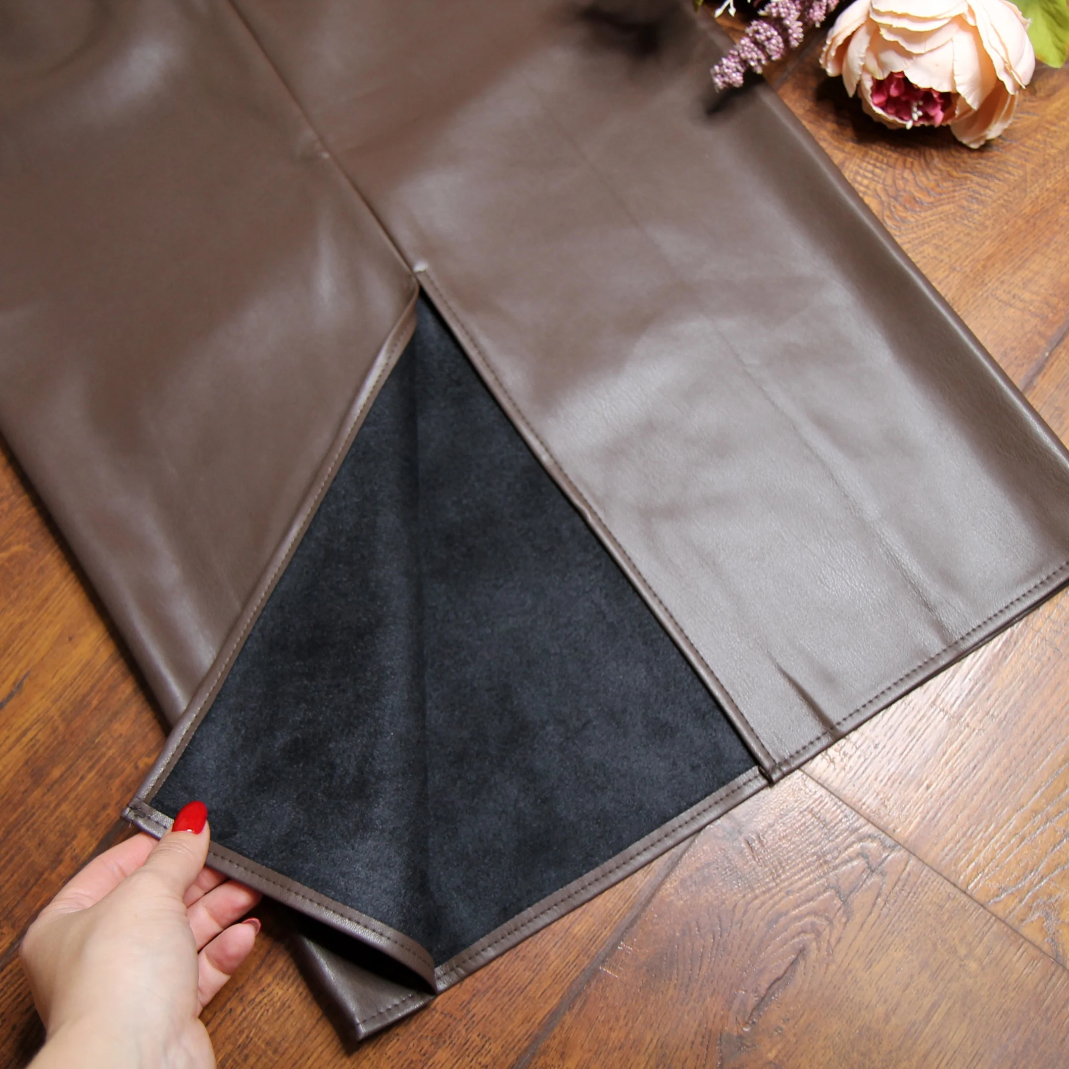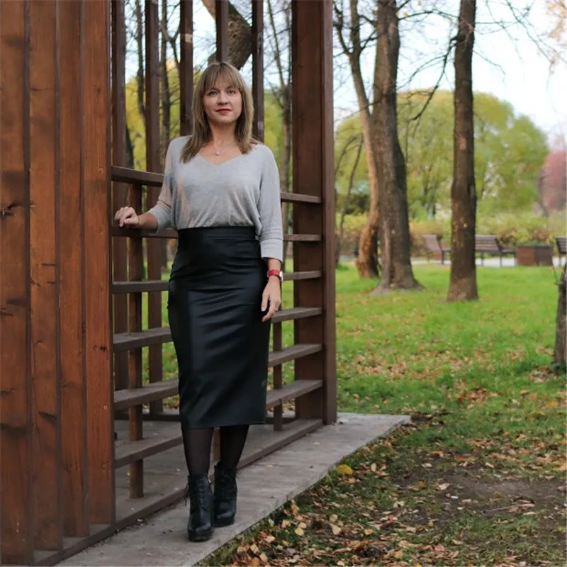 Юбка-карандаш женская из искусственной кожи, с высокой талией, зимняя, 74 см