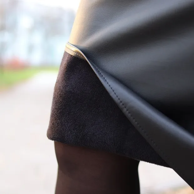 Мой Инстаграм Lavanda_Loves Юбка сшита из эко кожи. Кожа плотная, нежная, мягкой выделки. Внутри нежная и бархатистая, на флисовой основе. Так что зимой в ней не замёрзните! Кожа гладкая и матовая. Пошив у юбочки прекрасный. Все сточки ровнейшие, края обработанные и запаянные. Ткань стретчевая, хорошо тянется. Благодаря этому великолепно сидит на теле, хорошо носится. Разрез сзади не ограничивает шаг и не даёт юбке задираться.