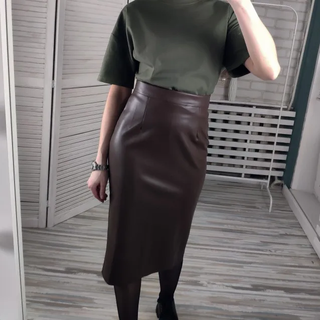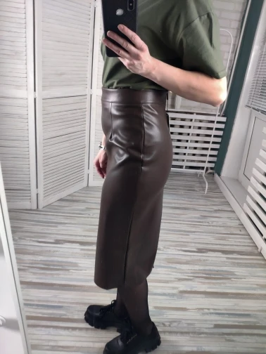 Моя юбка ,как ещё её называют- карандаш ,с высокой посадкой, выручит любую женщину. Ничто так не подчеркивает изящество женской фигуры, как юбка завышенной посадки. Изделие подходит практически всем женщинам без исключения. Такую модель можно смело носить с джинсовыми или клетчатыми рубашками, однотонными блузами, свитерами фактурной вязки. Это находка для любой модницы. Доставка в сочи была не больше двух недель. Очень мягкий кож зам ,отлично тянется. С обратной стороны , приятная к телу флисовая основа. На мои параметры : Рост 165 см, ОГ - 85, ОТ - 65, ОБ - 93 я заказала в размере М. Отлично подошла ! Поэтому делаю вывод, что размерная сетка продавца совпадает с заявленными параметрами. Пошив фабричный, все строчки ровные. Пикантный разрез сзади придаёт изюминку обладательницы такой юбочки. Юбку буду носить с огромным удовольствием и конечно обязательно рекомендую её всем!