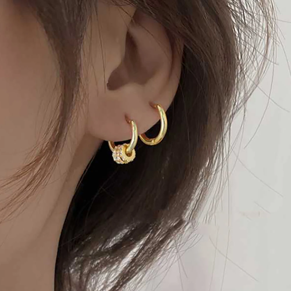 Женские Геометрические серьги, блестящие кольца с кубическим цирконием, простые серьги, 2021, корейские, маленькая серьга-кольцо