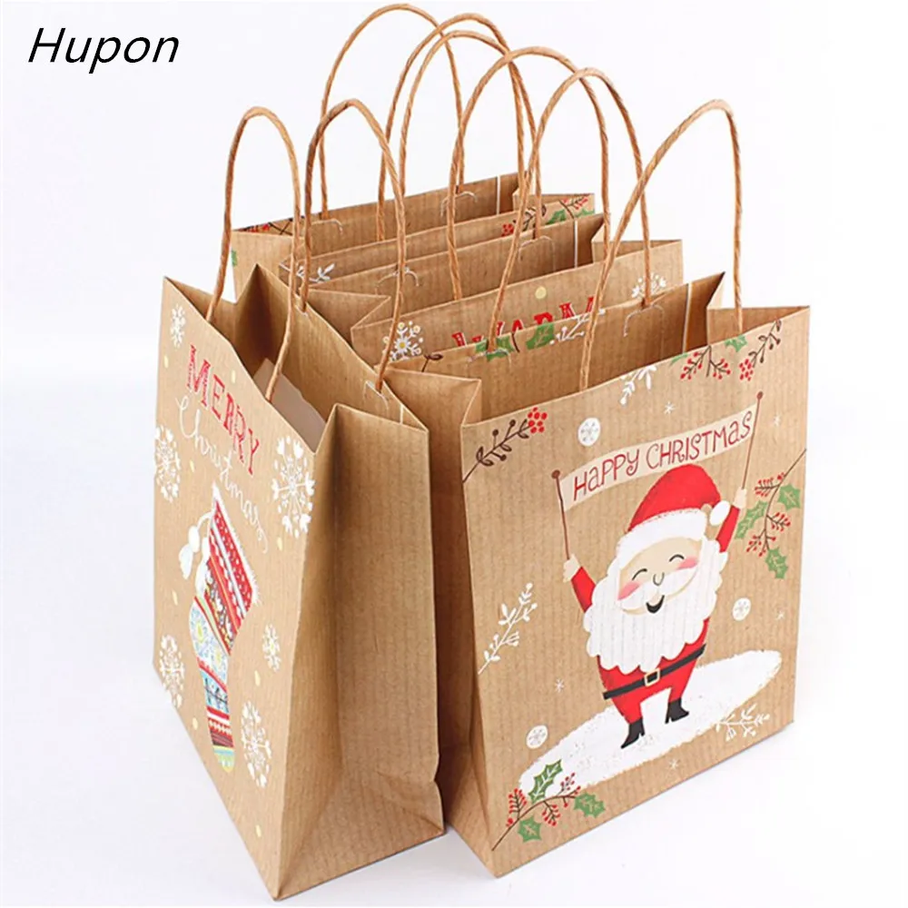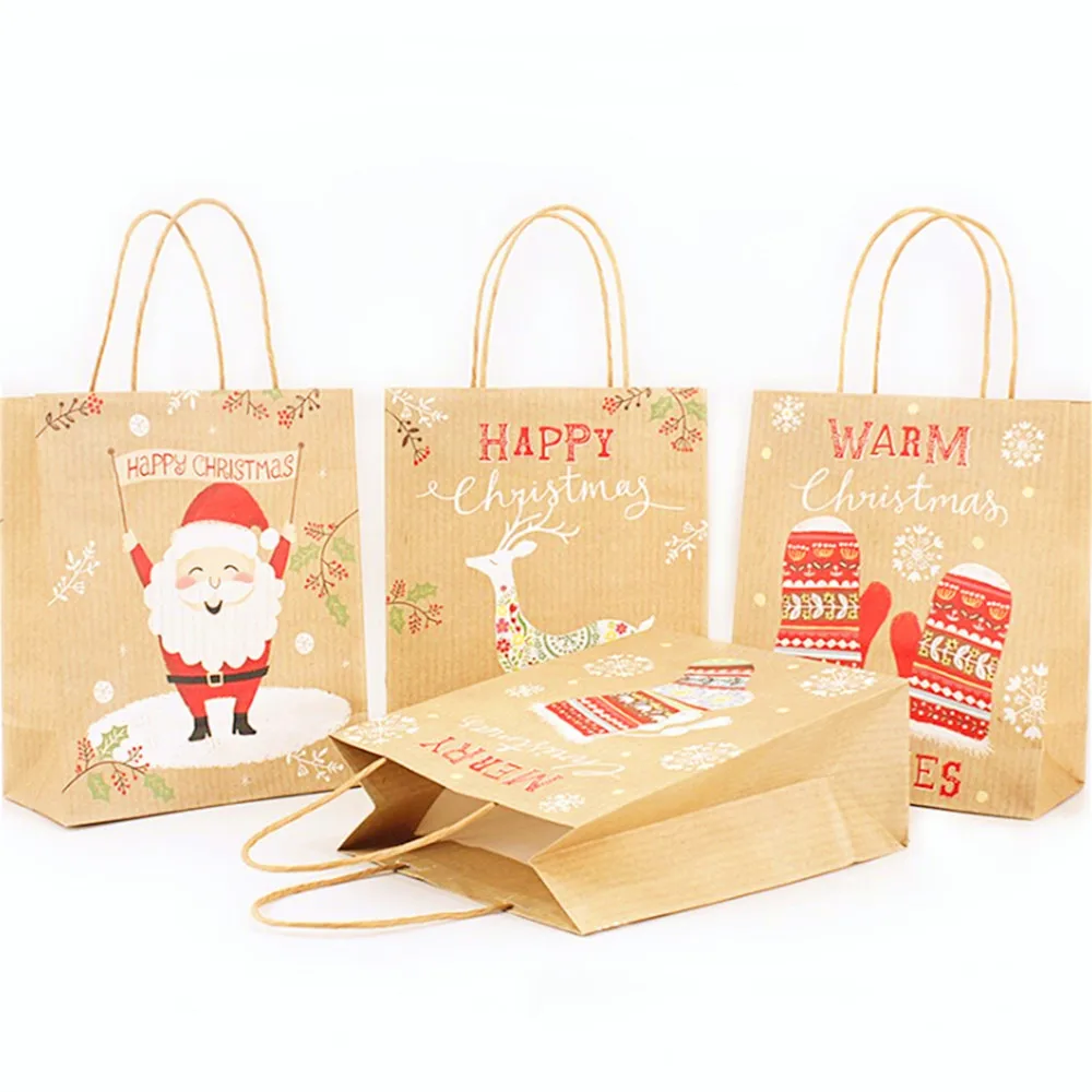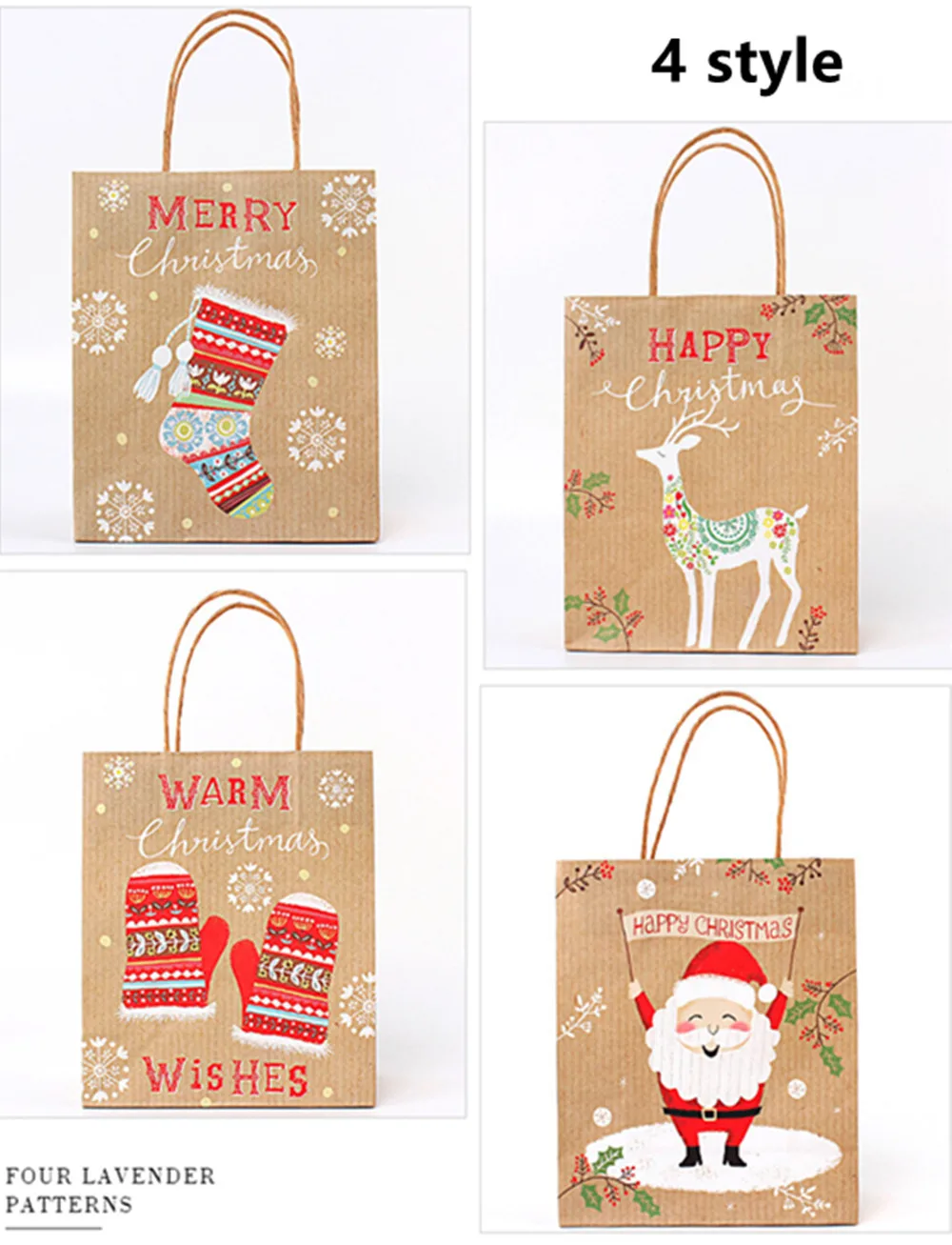 Рождественские подарочные пакеты 4 шт., мешки Санты, бумажные пакеты из крафтовой бумаги для рождества, свадьбы, декора, вечеринки, Подарочная коробка для гостей