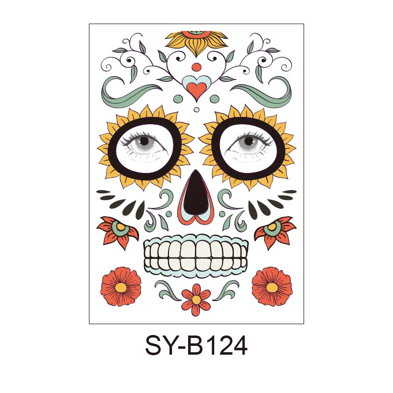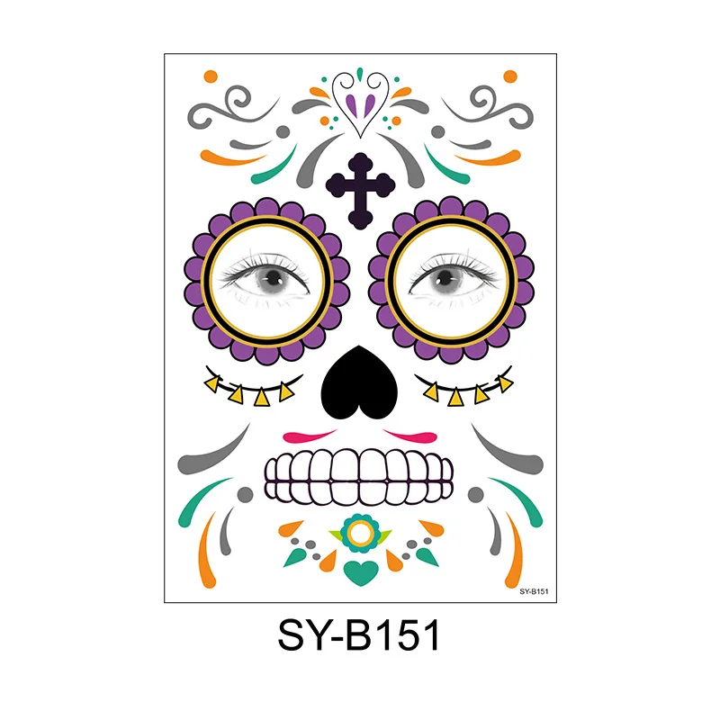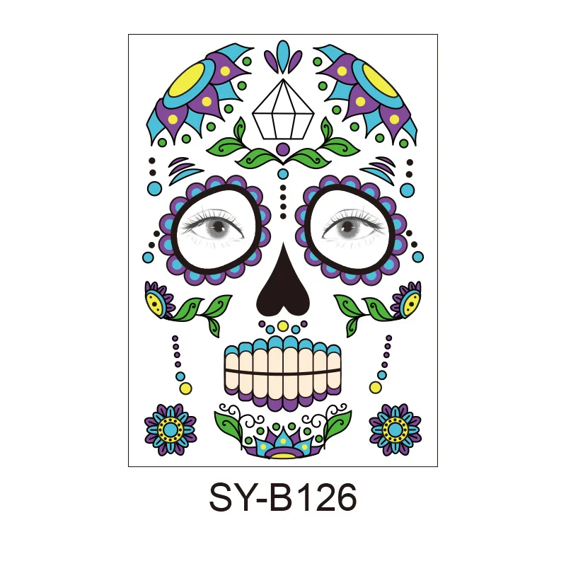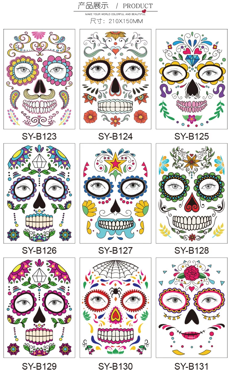 Временные татуировки стикер s водонепроницаемые татуировки для Дня мертвых одноразовые боди-арт лица стикер Хэллоуин татуаж временный