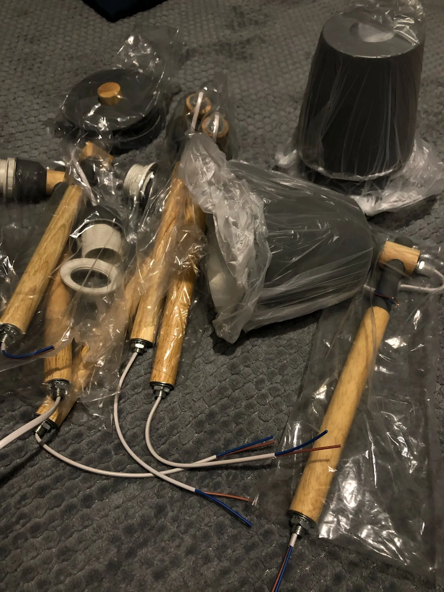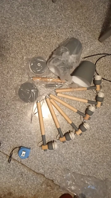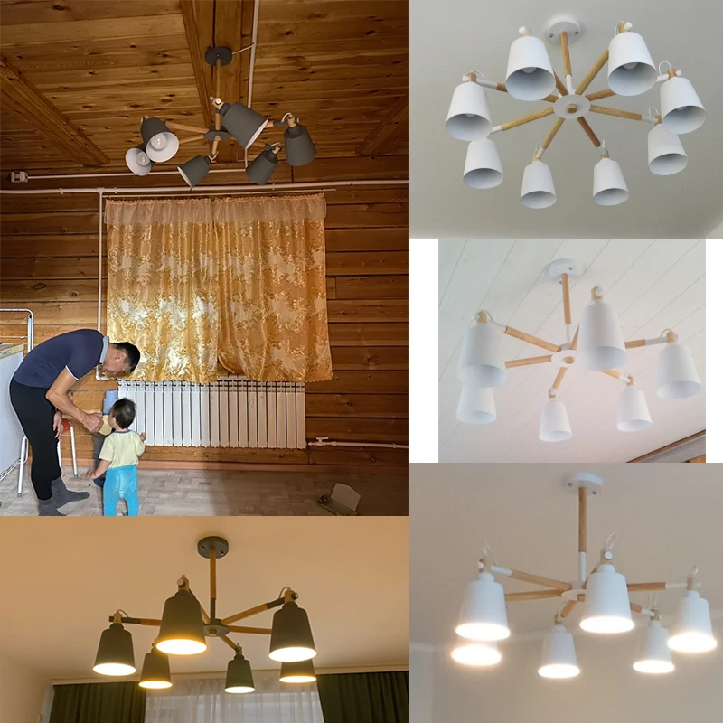 Взял две - белую и серую. Люстры из настоящего металла и настоящего дерева. Качество - высокое, смотрятся очень хорошо. Есть мелкие огрехи, но в целом всё прекрасно. Для меня подвес оказался длинным, люстра висела очень низко, поэтому отказался от деревянной части подвеса, оставив только металлическую часть ~ 10 см. К покупке рекомендую.