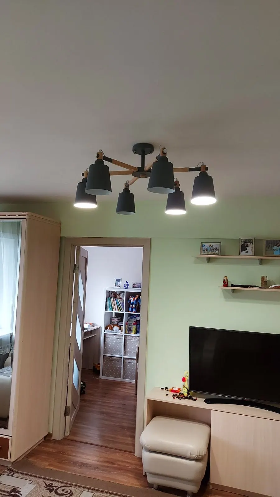 люстра норм, 8 рожков для кухни в 15 кв.м - наверное многовато ))), но поставили лампы по 6 Вт*8 рожков жёлтого цвета, вроде норм получилось, когда стояли по 15 Вт *8 шт- ну оооочень ярко было, аж глазам больно было))). собрал за 1 вечер и прикрутил за пару часов, пришлось немного укоротить ( потолки 2.50 всего).