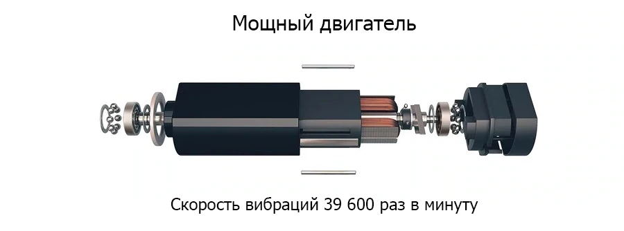Немецкие и японские специалисты Lianhe разработали совершенно новый двигатель, который может развивать скорость вибраций 39 600 раз в минуту, что эффективно снимает налет с поверхности зубов и очищает межзубное пространство. А оптимизированный звук вибрации значительно снизил уровень шума.