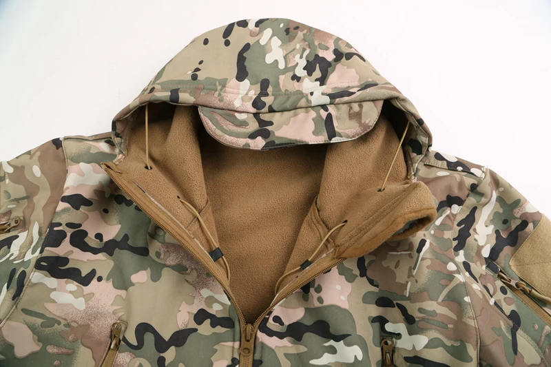 Зимняя мужская тактическая ФЛИСОВАЯ ФУТБОЛКА, камуфляжная ветровка, водонепроницаемые охотничьи куртки, верхняя одежда, армейская Военная флисовая куртка