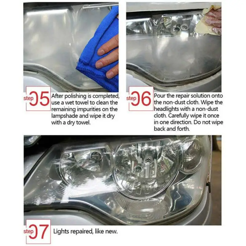 * Восстановите тусклые и облачные линзы ваших автомобильных фар и Увеличьте безопасность во время вождения ночью с помощью совершенно новой жидкости для ремонта автомобильных фар.