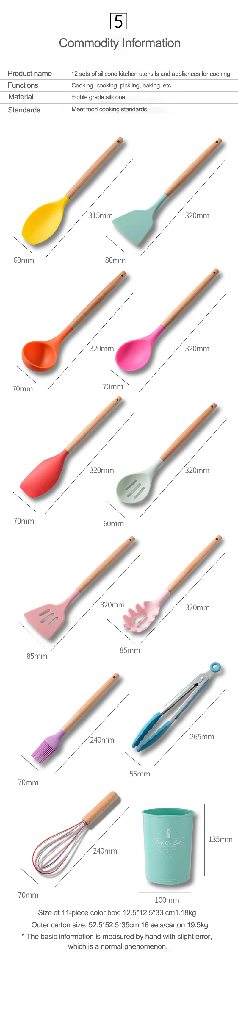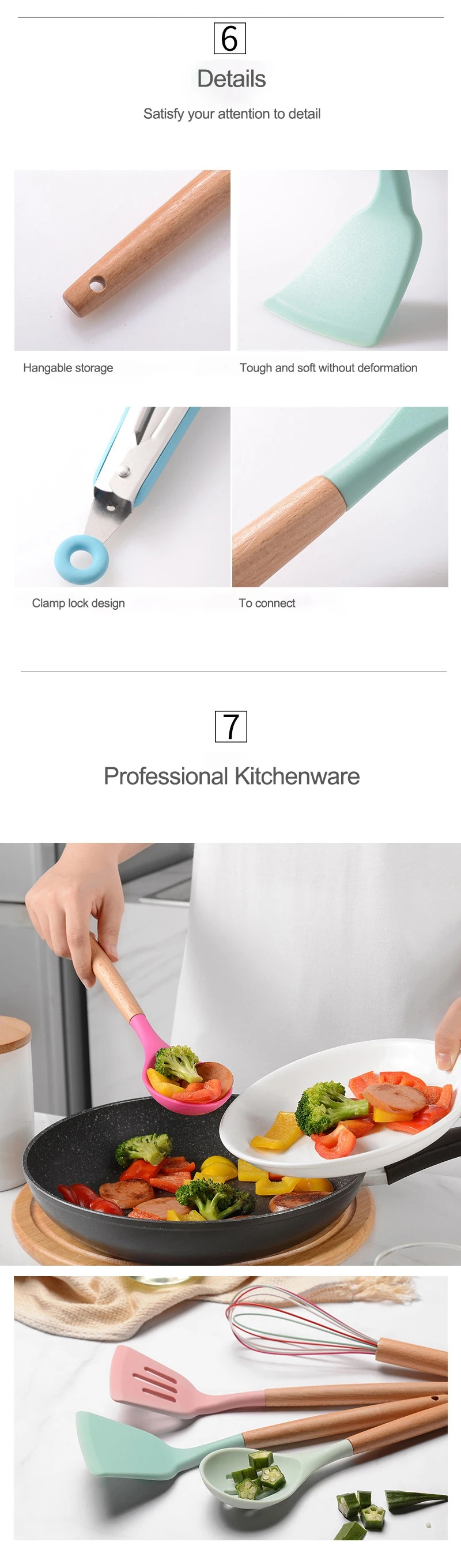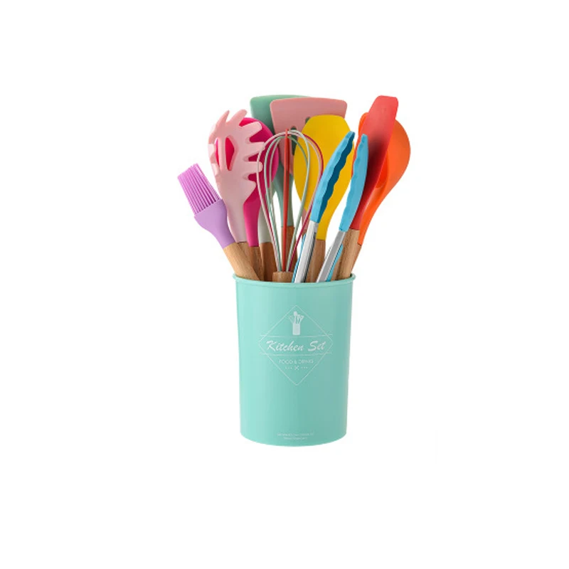 Красочные силиконовые кухонные принадлежности набор антипригарная сковорода кухонная лопатка ложка 12 шт деревянная ручка высокая термостойкость