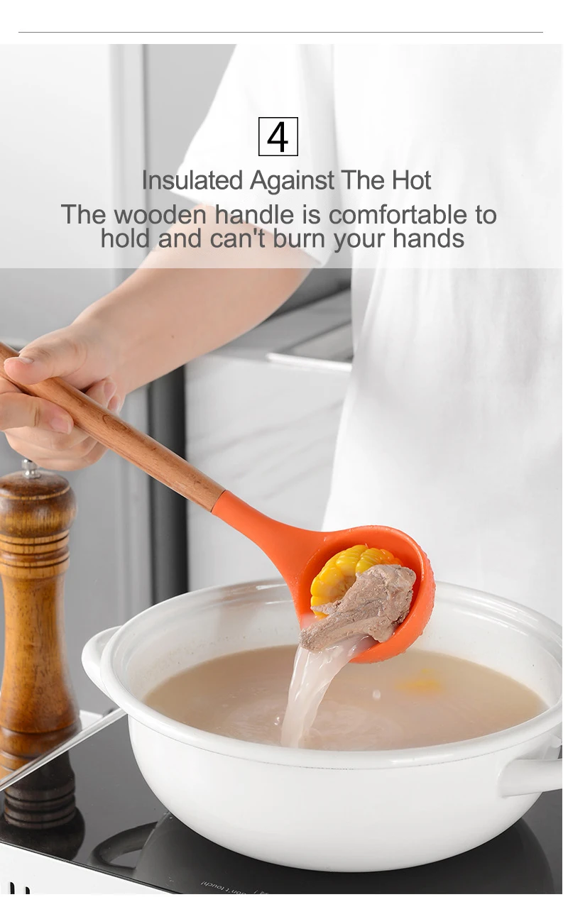 Набор кухонной утвари из 12 предметов, цветная силиконовая антипригарная ложка, деревянная ручка, устойчивая к высоким температурам
