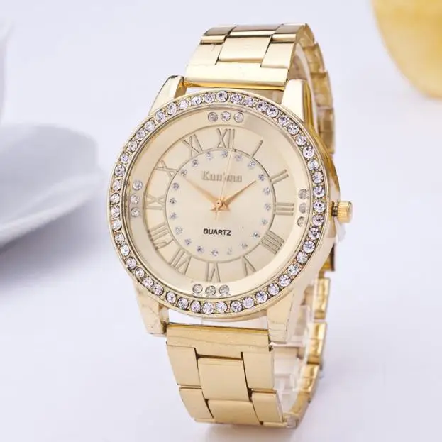 Часы женские кварцевые, из нержавеющей стали, со стразами