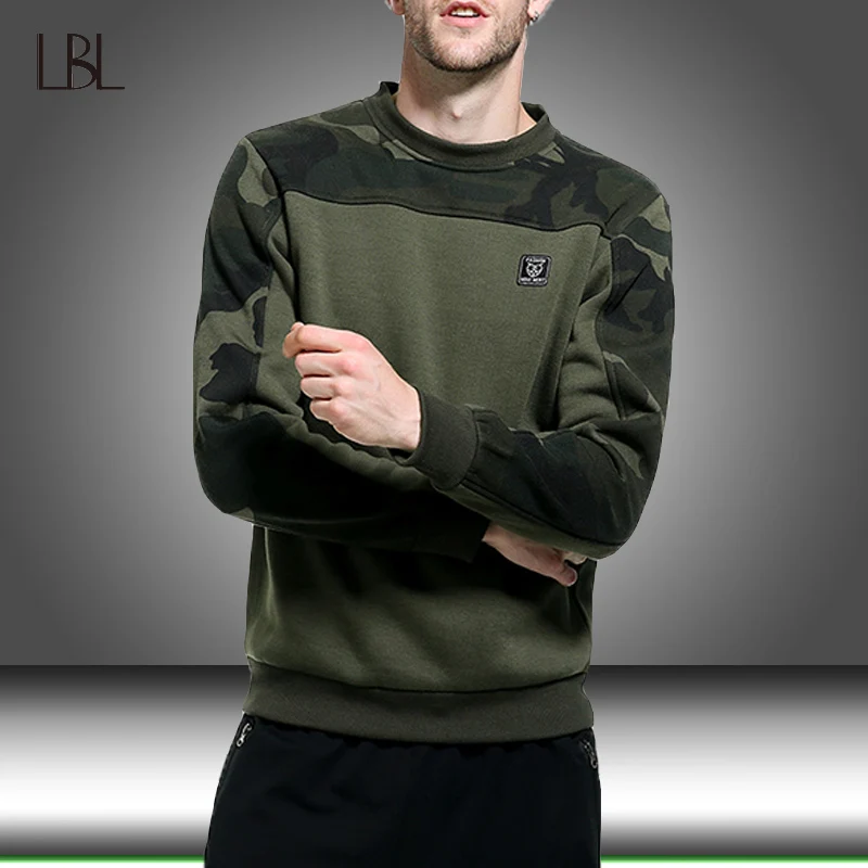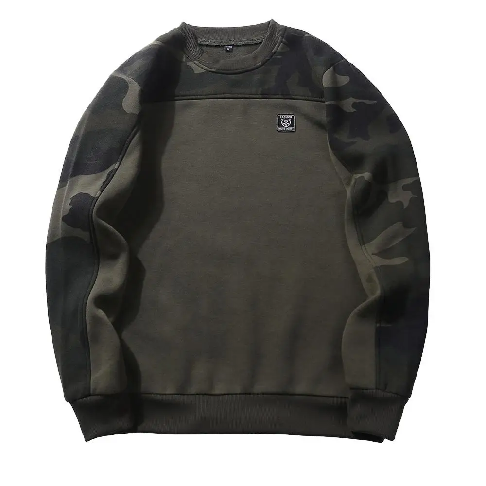 Свитшот мужской с флисовой подкладкой, камуфляжная толстовка без капюшона в стиле Харадзюку, пуловер с круглым вырезом, пэчворк, уличная одежда, осень-зима
