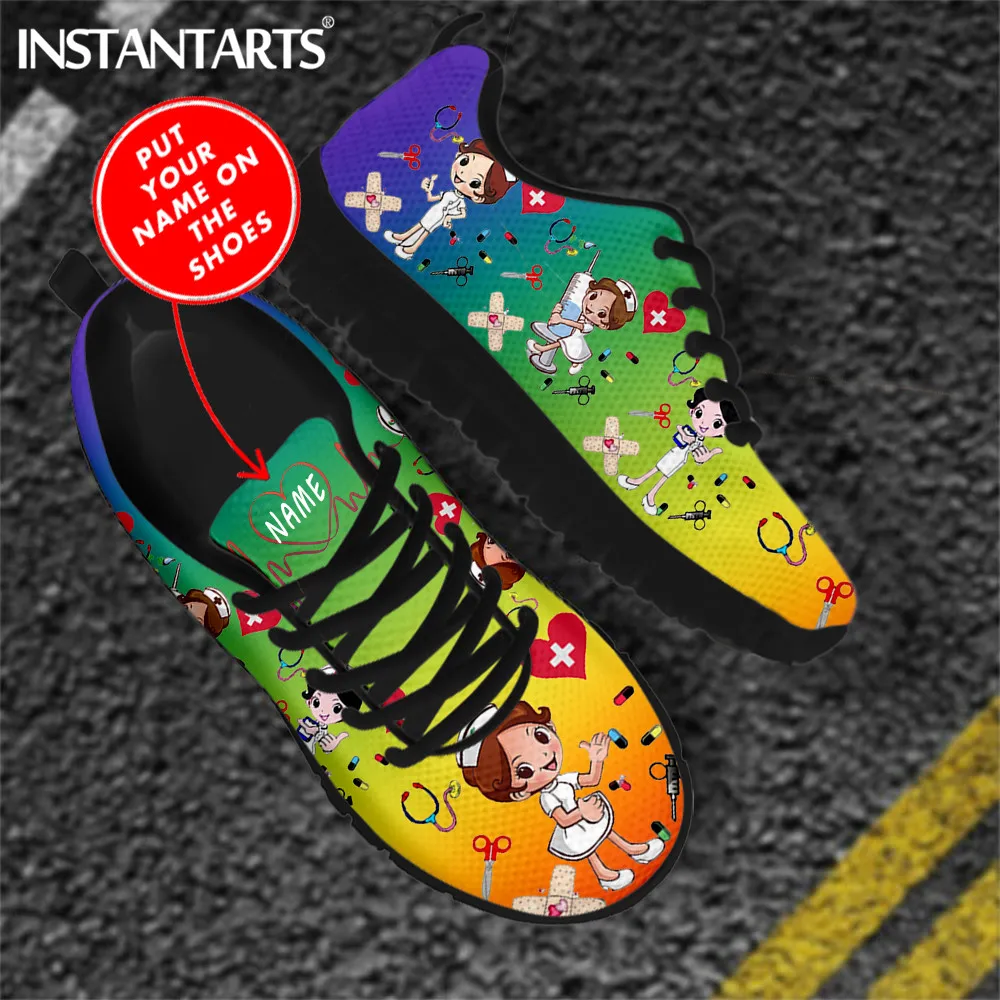 Женские кроссовки INSTANTARTS, красочные Мультяшные кроссовки для медсестер, женская обувь на плоской подошве с принтом доктора, Прямая поставка