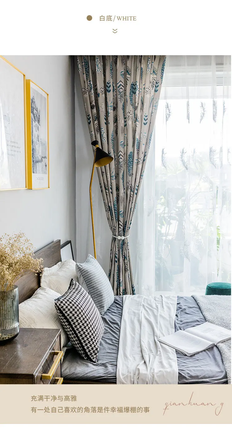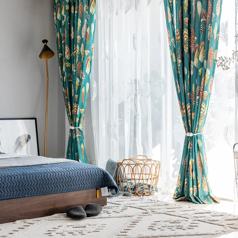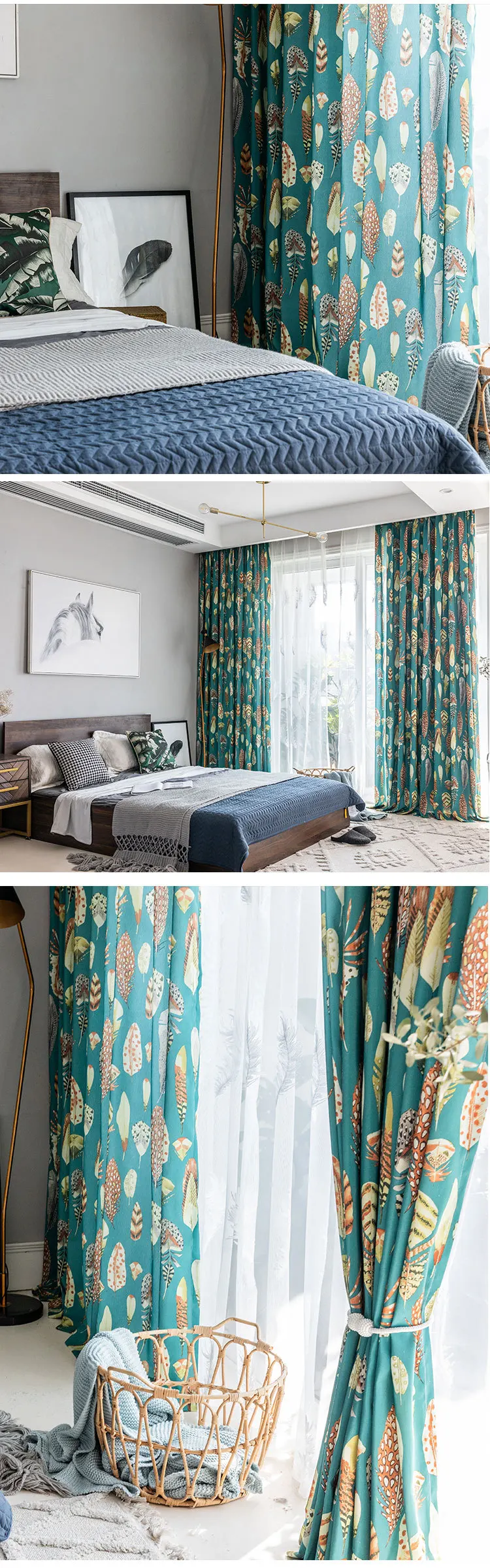 Красочные шторы с изображением перьев для гостиной, спальни, шторы в американском стиле, украшение на зеленое окно