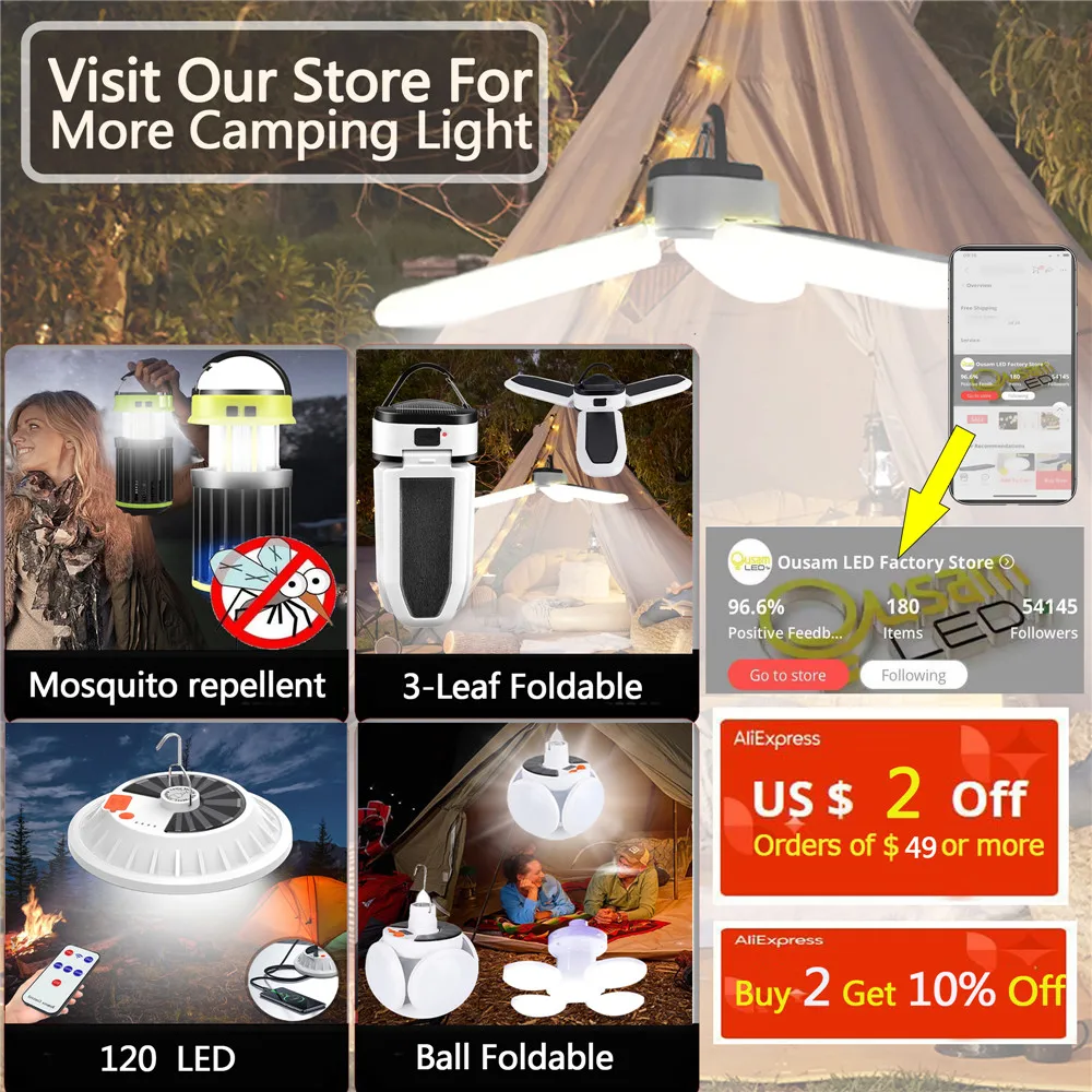 Светильник онарь для кемпинга, складной уличсветильник онарь с зарядкой от USB или солнечной батареей, 60 светодиодов