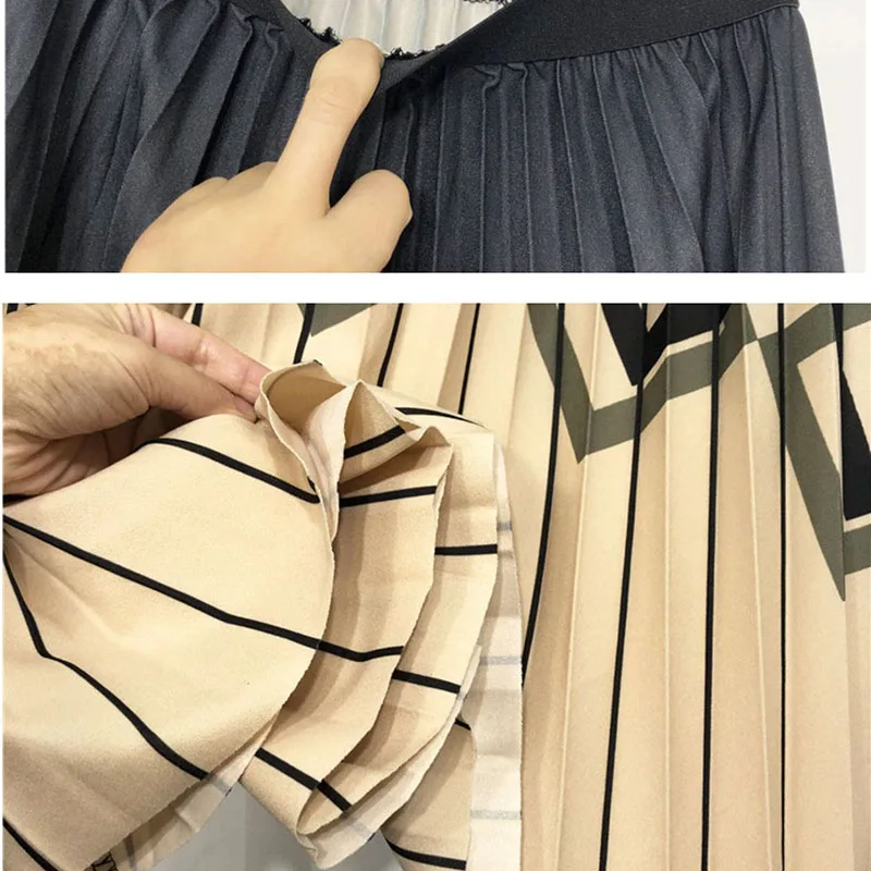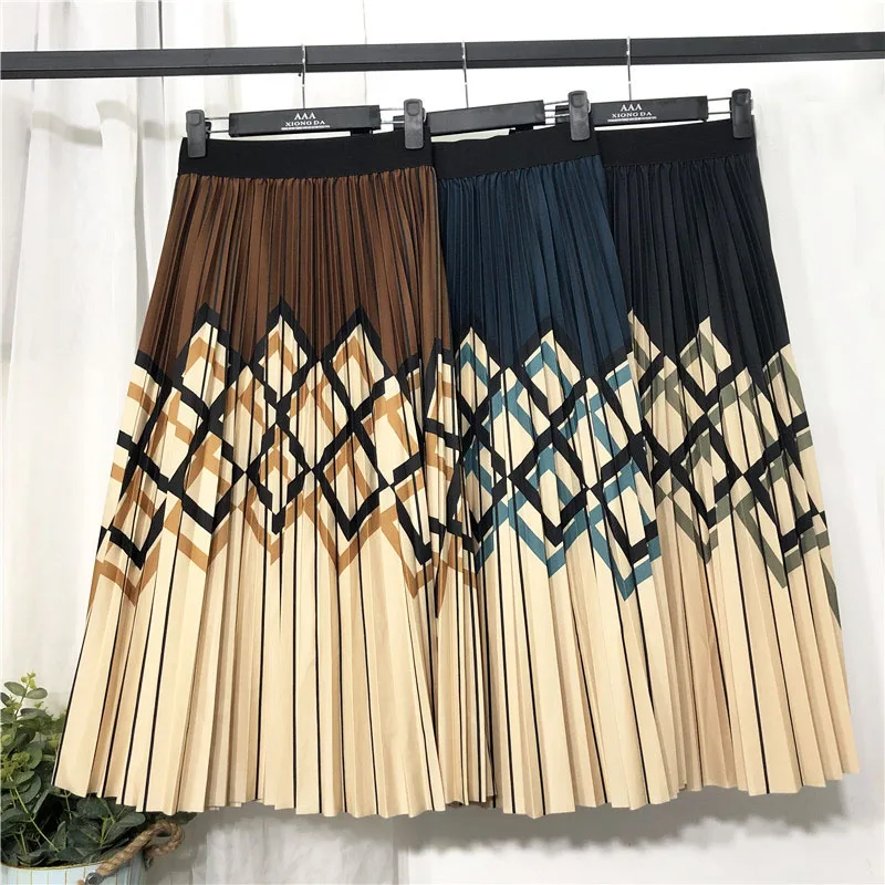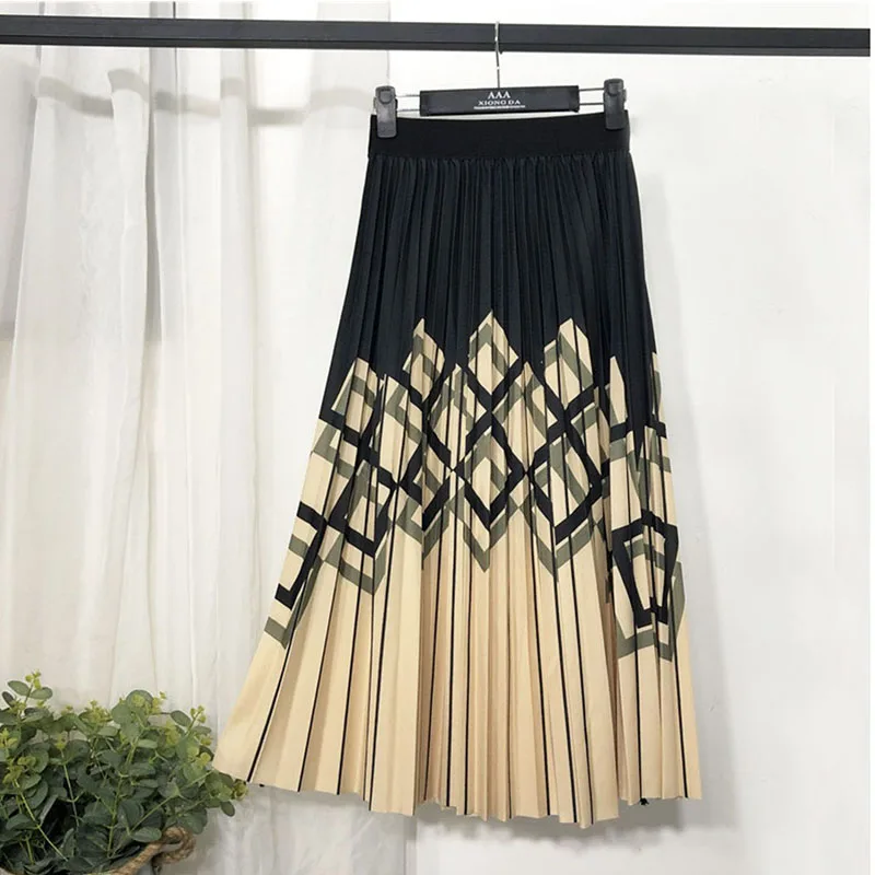 Женская длинная юбка, трапециевидная юбка составного кроя с геометрическим рисунком, Осень-зима 2020, плиссированная повседневная юбка