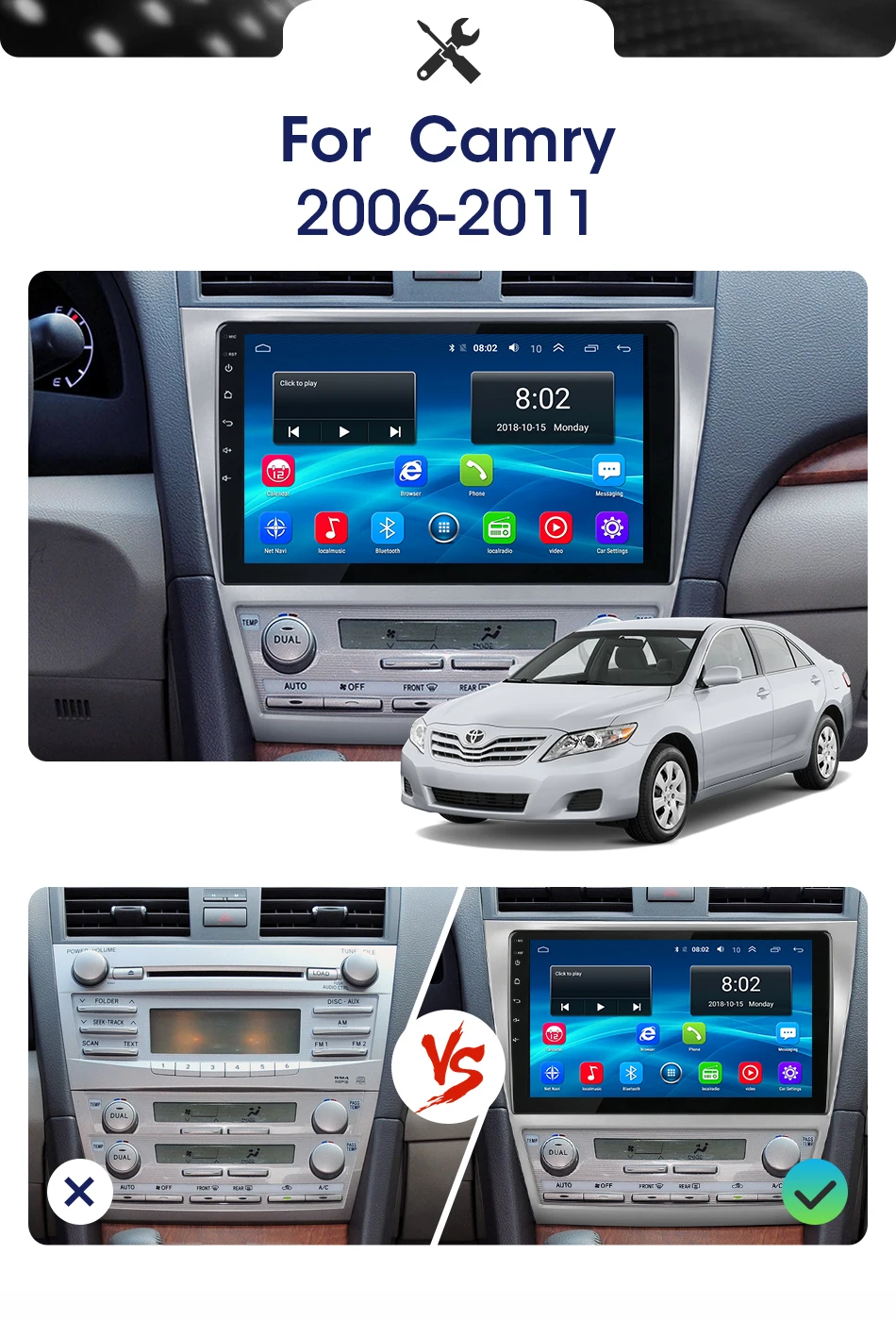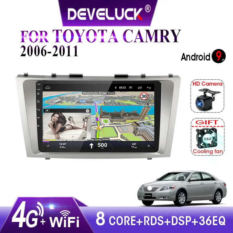 Автомагнитола 2 din, Android 10,0, мультимедийный видеоплеер, GPS-навигация для Toyota Camry 6, xв 40, 50, 2006-2011, 8, Восьмиядерный, без dvd
