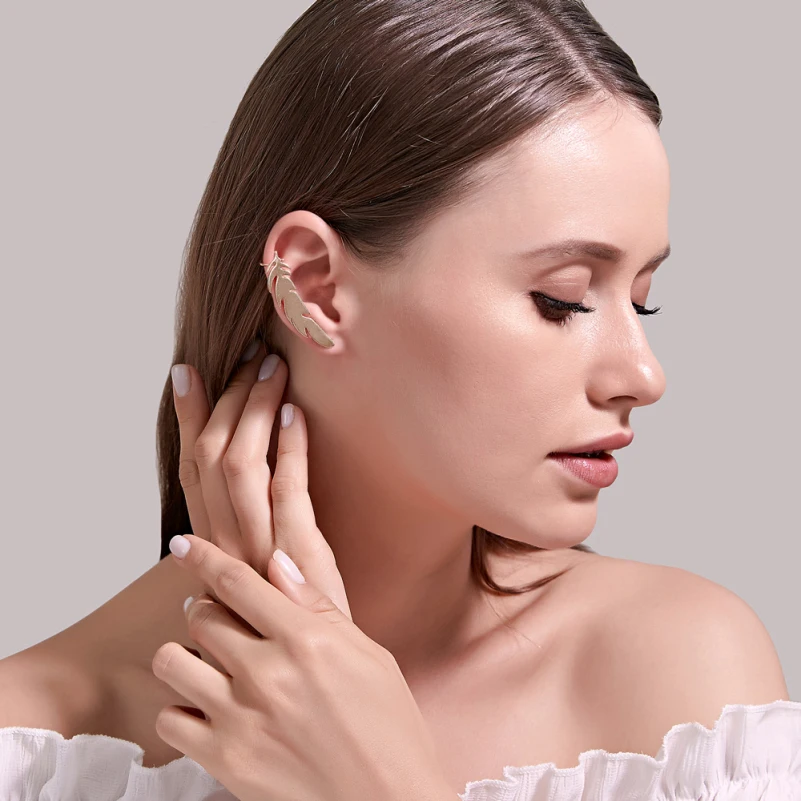 ZYZQ шик не пирсинг перо в форме сердца кафф на ухо серьги-гвоздики...