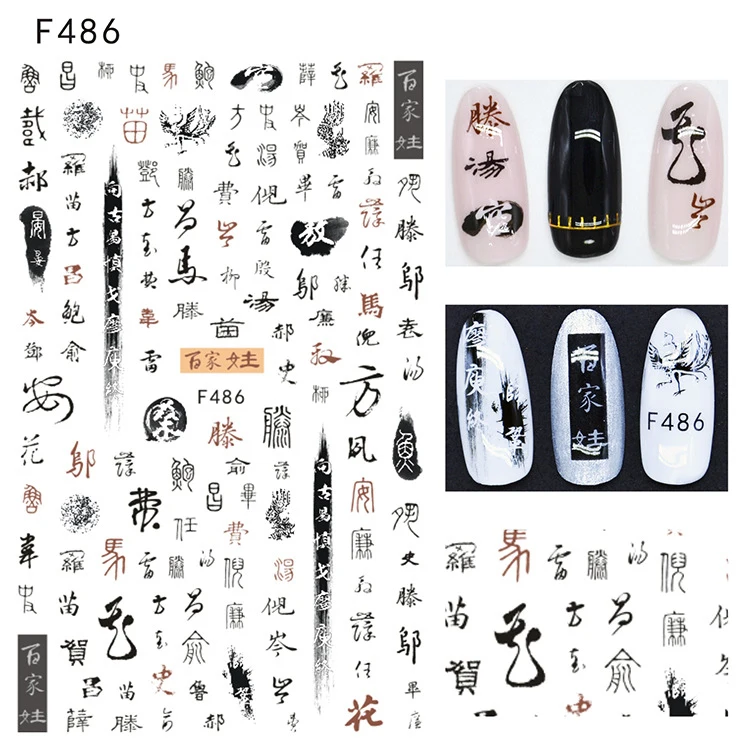 Китайские персонажи каллиграфия Дракон Тигр Феникс клейкие наклейки для ногтей наклейки для личностей украшения ногтей наклейки