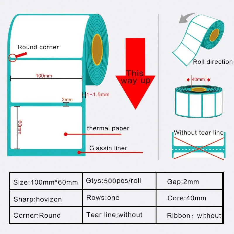 Клейкая термоэтикетка, Наклейка 50-80 мм, бумага для супермаркета, ...