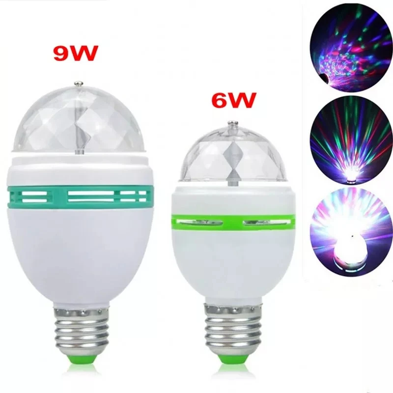 Вращающийся Хрустальный волшебный шар, 6 Вт, 9 Вт, светодиодная сценическая лампа RGB, лампа E27 для дискотеки, вечеринки, диджея, рождественского эффекта