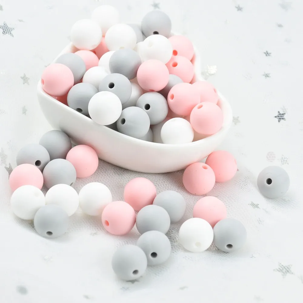 100 шт. разные цвета 12-15 мм Силиконовые Круглые шарики DIY прорезывание зубов ожерелье без БФА жевательные Подвески Аксессуары для кормления новорожденных