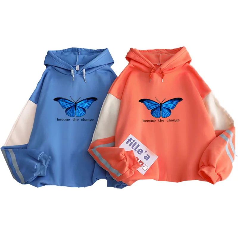 Новинка, милый Свитшот Harajuku с капюшоном и изображением бабочки, Женский свитшот с длинным рукавом, топы с капюшоном в стиле пэчворк