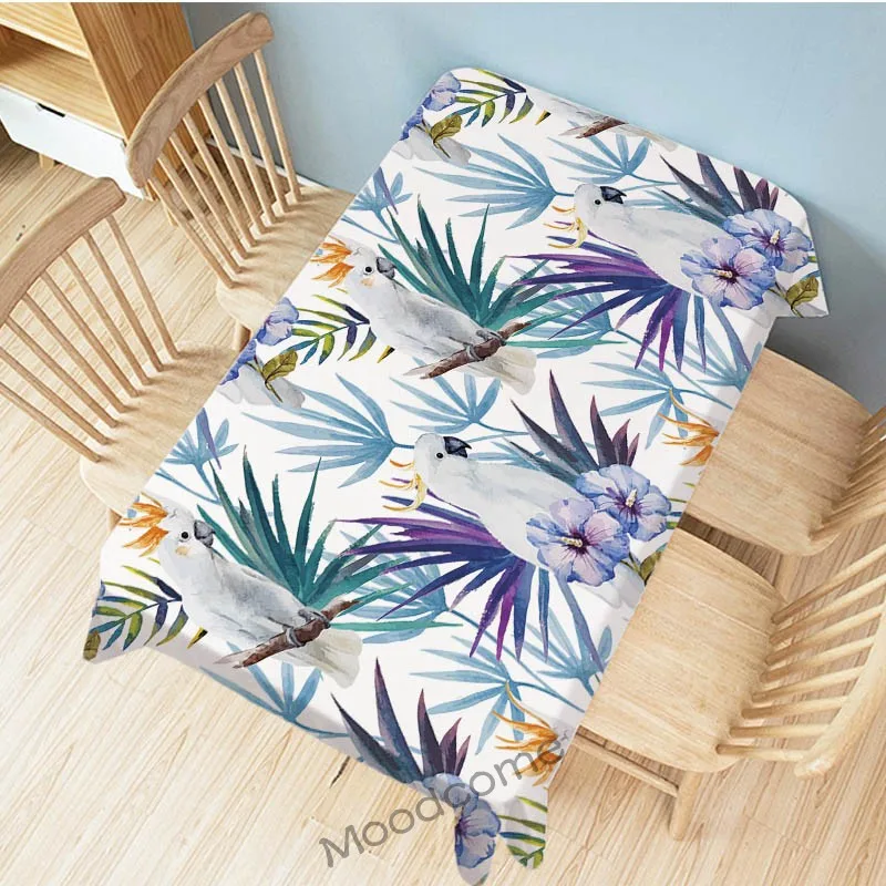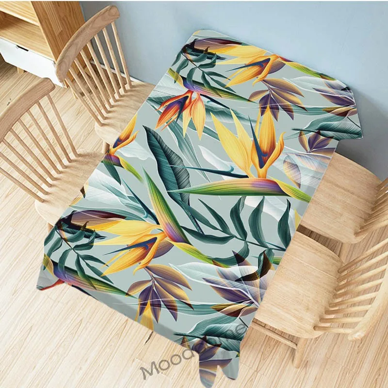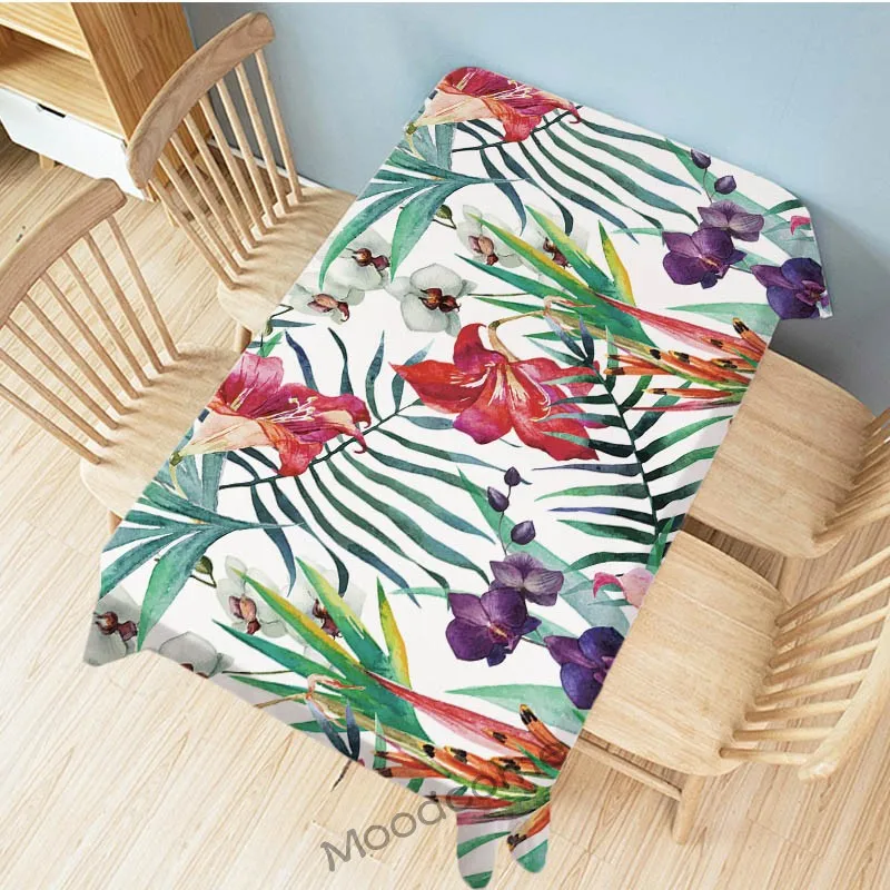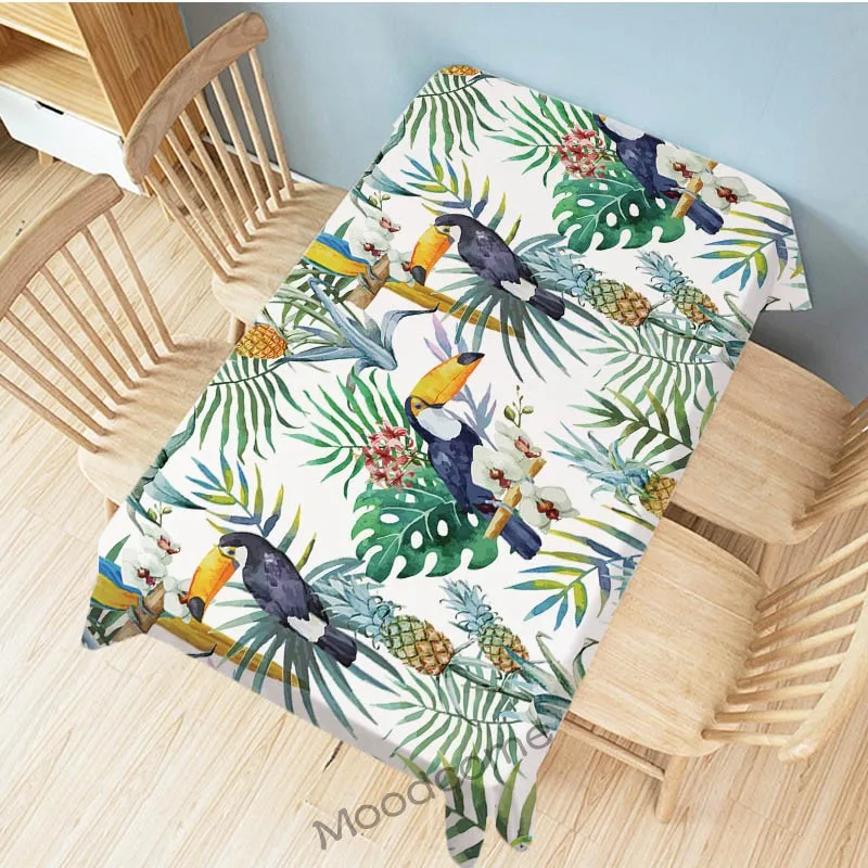 Водонепроницаемая льняная скатерть с изображением тропических листьев, цветов, фламинго, птиц, попугая