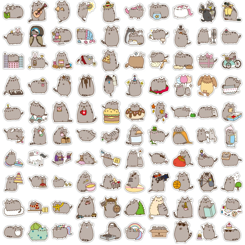 100 шт, принт с героями мультфильмов Kawaii, Милая футболка с толстым котом; Наклейки для ноутбуков Libretas мотоцикла компьютерный шлем ноутбук велосипеда автомобиля Водонепроницаемый стикер