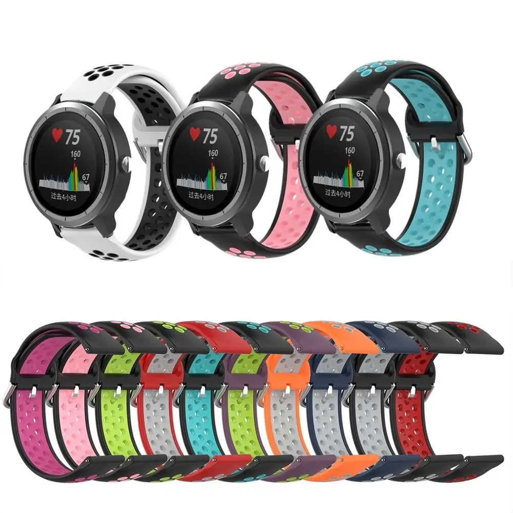 Ремешок для часов 20 мм для Garmin Vivoactive 3 Music Vivomove HR, дышащий спортивный браслет для Forerunner 245 645, силиконовый ремешок