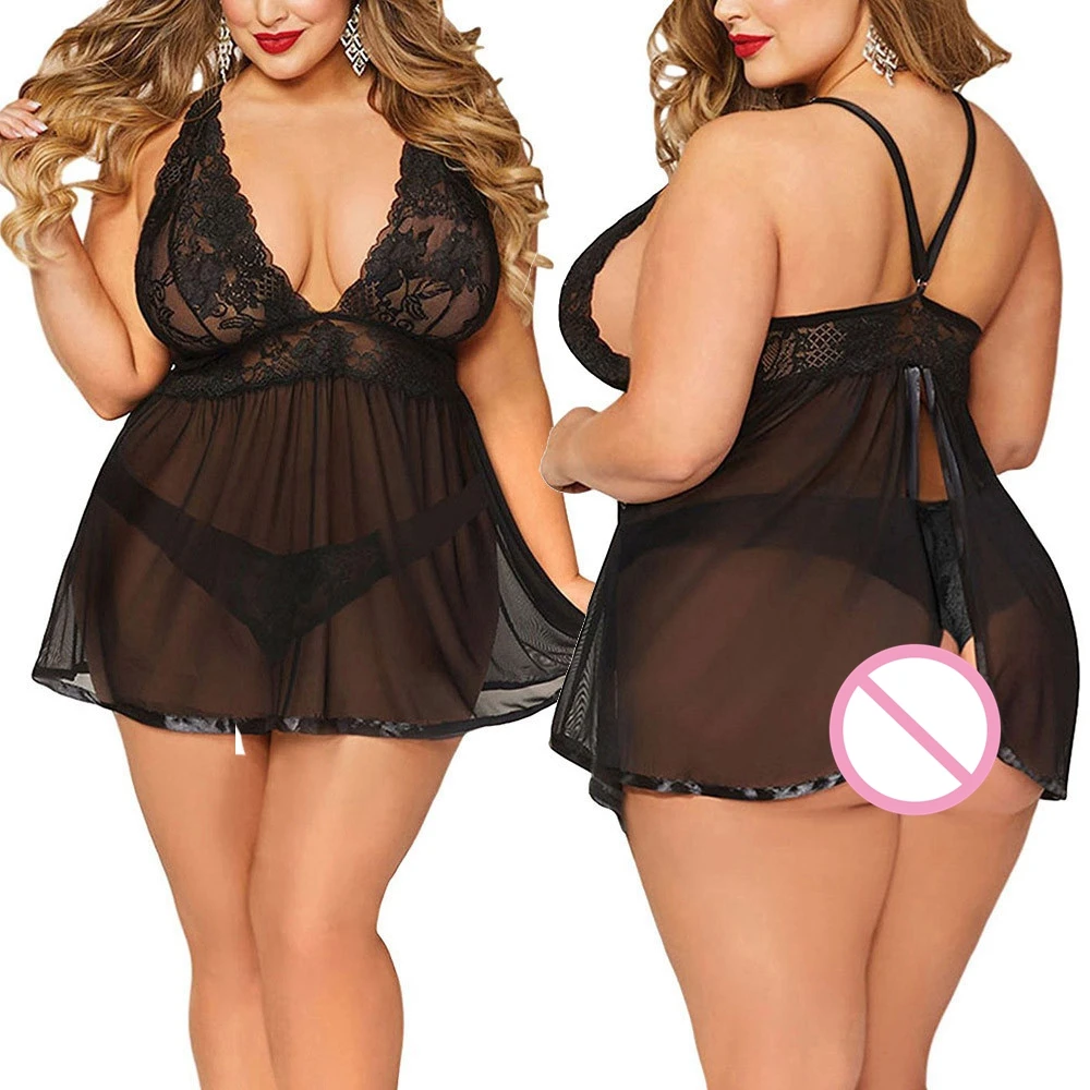 Ночная рубашка с лямкой на шее, сетчатая, размера плюс, сексуальное...