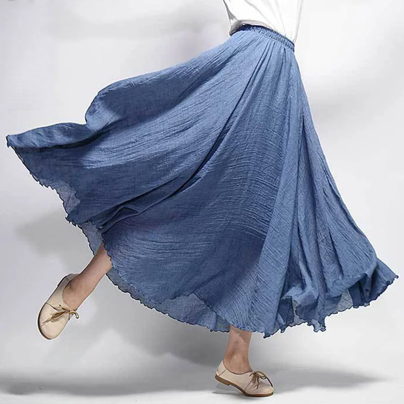 Юбка льняная женская, с высокой талией, повседневная, двухслойная, на резинке, для лета, 2020