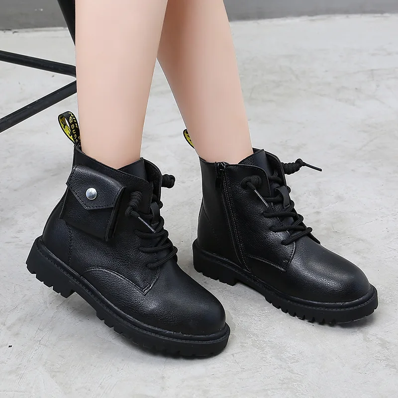 Черная обувь для подростков; Девичья зимняя обувь 2020 года для принцессы; Детская обувь для осени; Кожаные ботинки для мальчиков и девочек; Школьная обувь для детей 6-14 лет