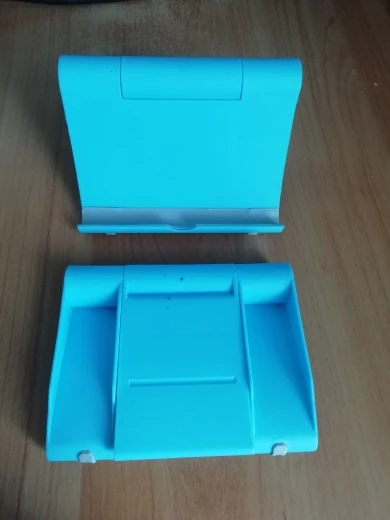 Подставка пришла быстро, цвет желаемый. Оказалась хорошего качества, прочный пластик, удобно раскладывается во много положений. Телефон держит как горизонтально, так и вертикально. Освобождает руки и подручные предметы на кухне от телефона.( Главное, чтоб дети не отломали ушки, которые цепляются за бороздки, на этом все и держится). Компактно складывается и помещается в карман.