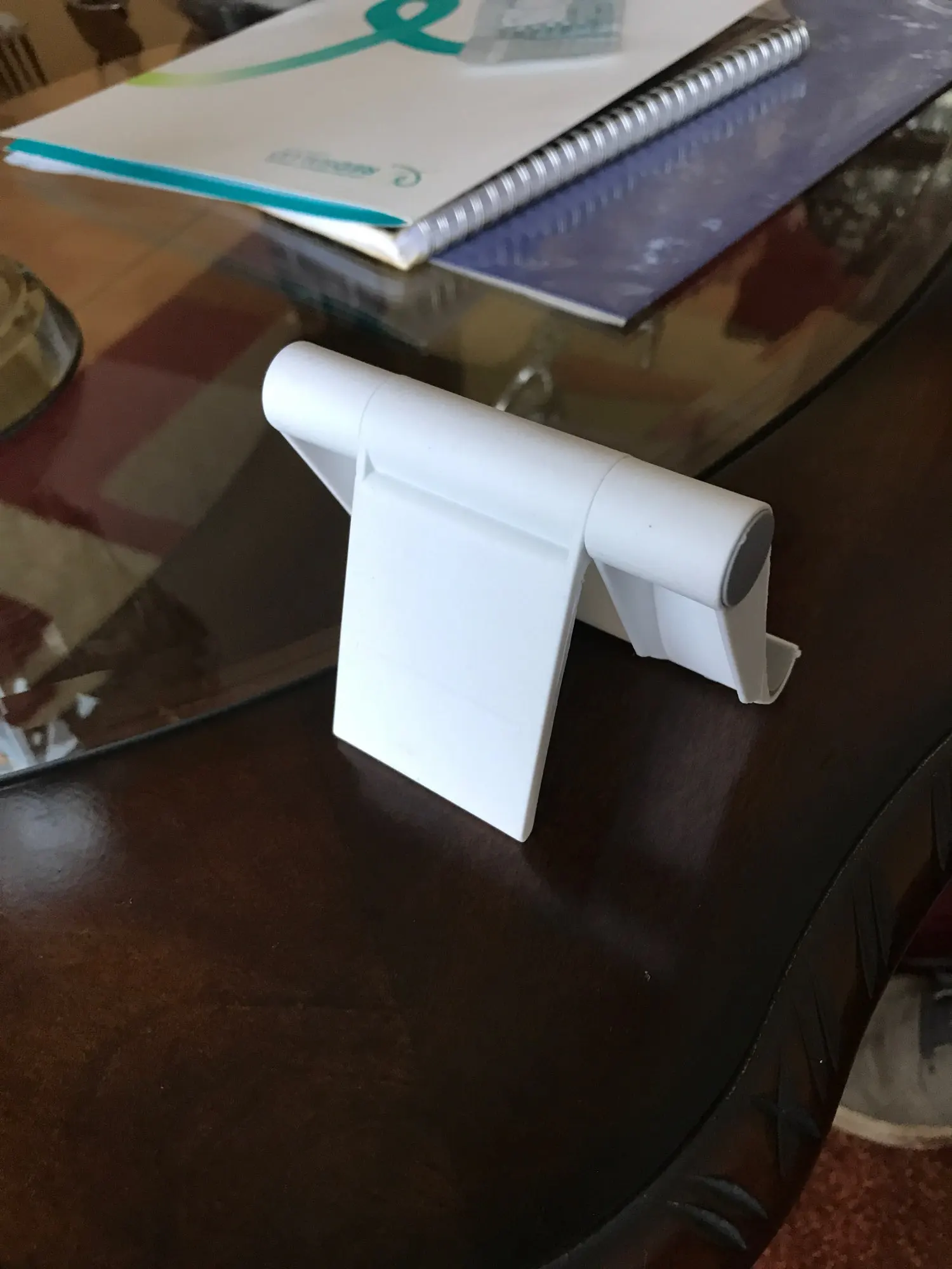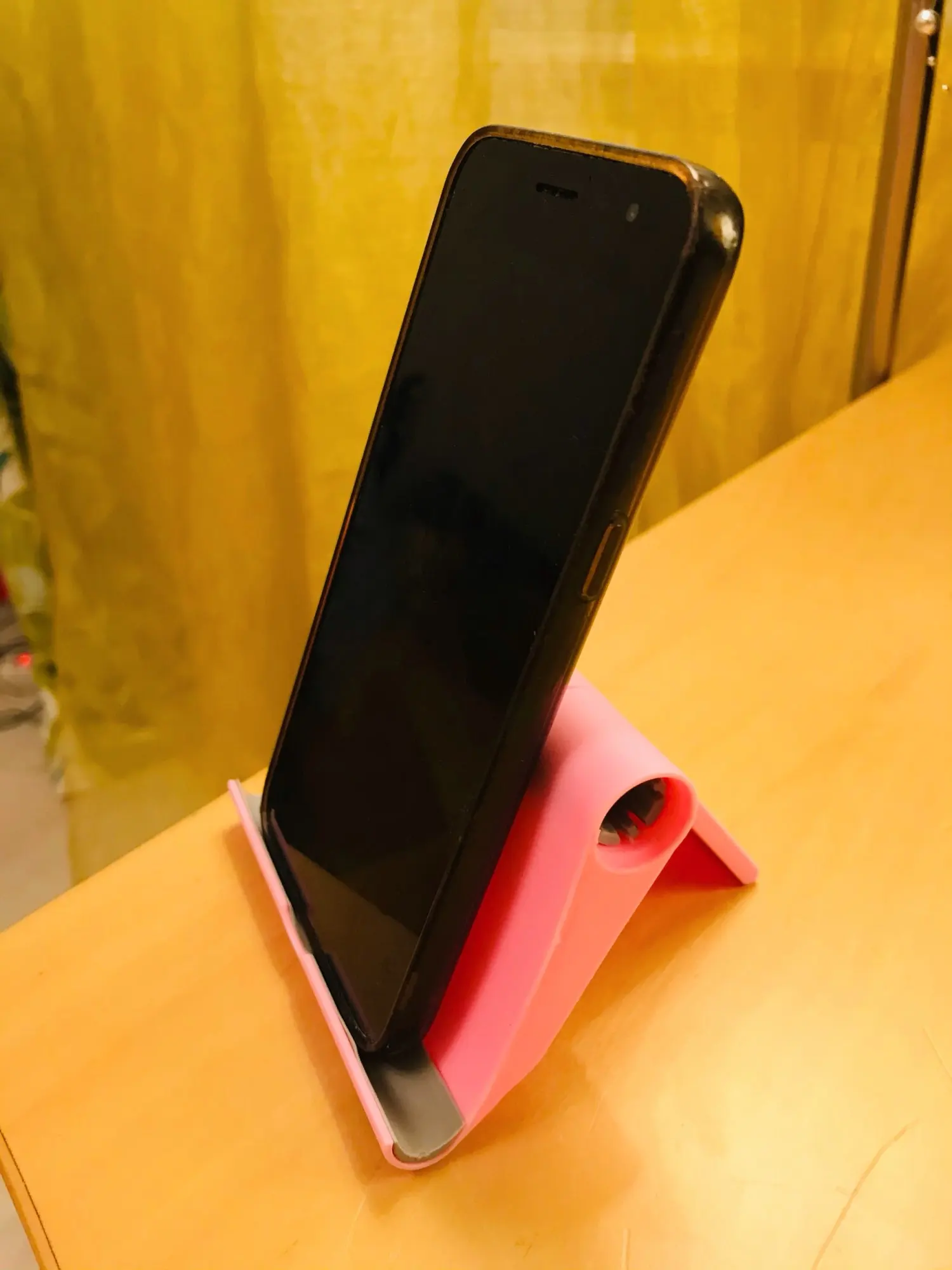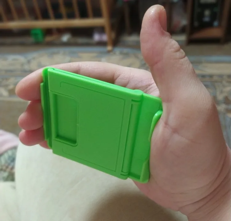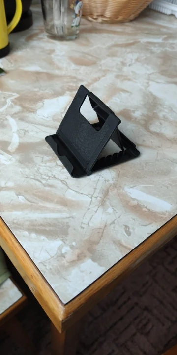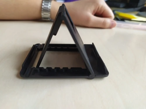 Для не маленьких телефонов и планшетов - самое то. Ножки - почти резина: не скользят. При первом раскрытии будьте осторожны: ход поначалу настолько тугой, что можно сломать (берите поближе к оси не создавая "рычаг"). Правда, "разрабатывается" быстро - всё же пластик. На фото: смартфон 4,5"