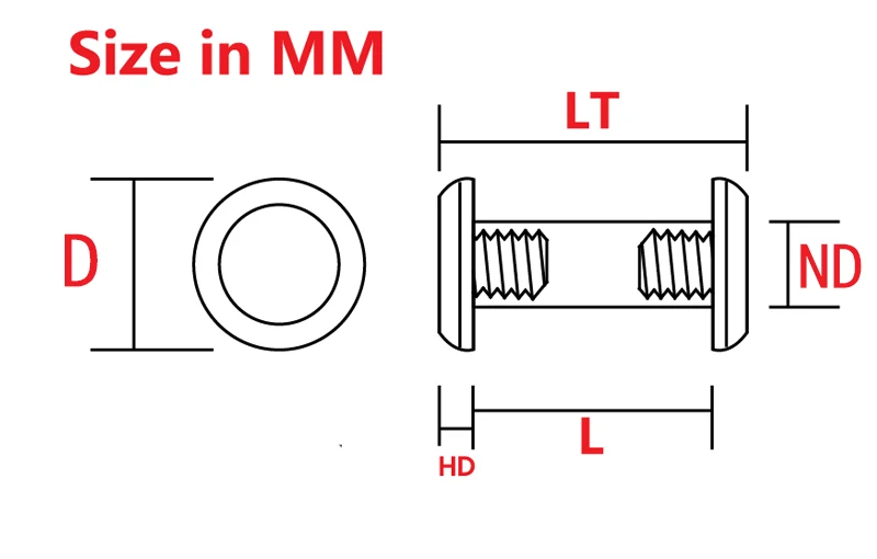 Размер 5 мм 7: M4 ND = 5 мм LT = 29 мм L = 25 мм