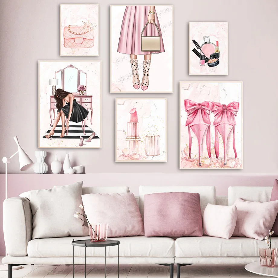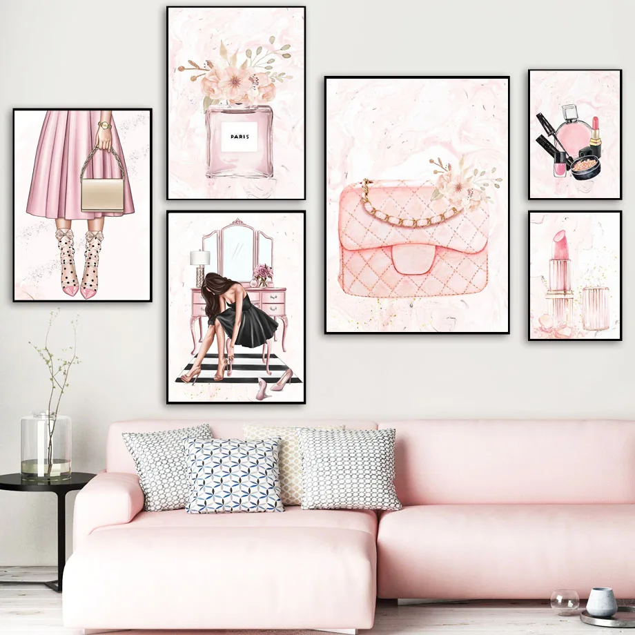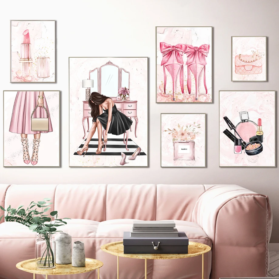 Настенные плакаты и картины с изображением розового города, трамвая...