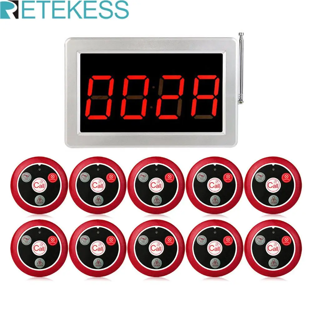Беспроводная система официанта Retekess ресторанная пейджер Голосовая трансляция хост + 10 кнопок вызова T117 для бара офиса кафе Обслуживание клиентов