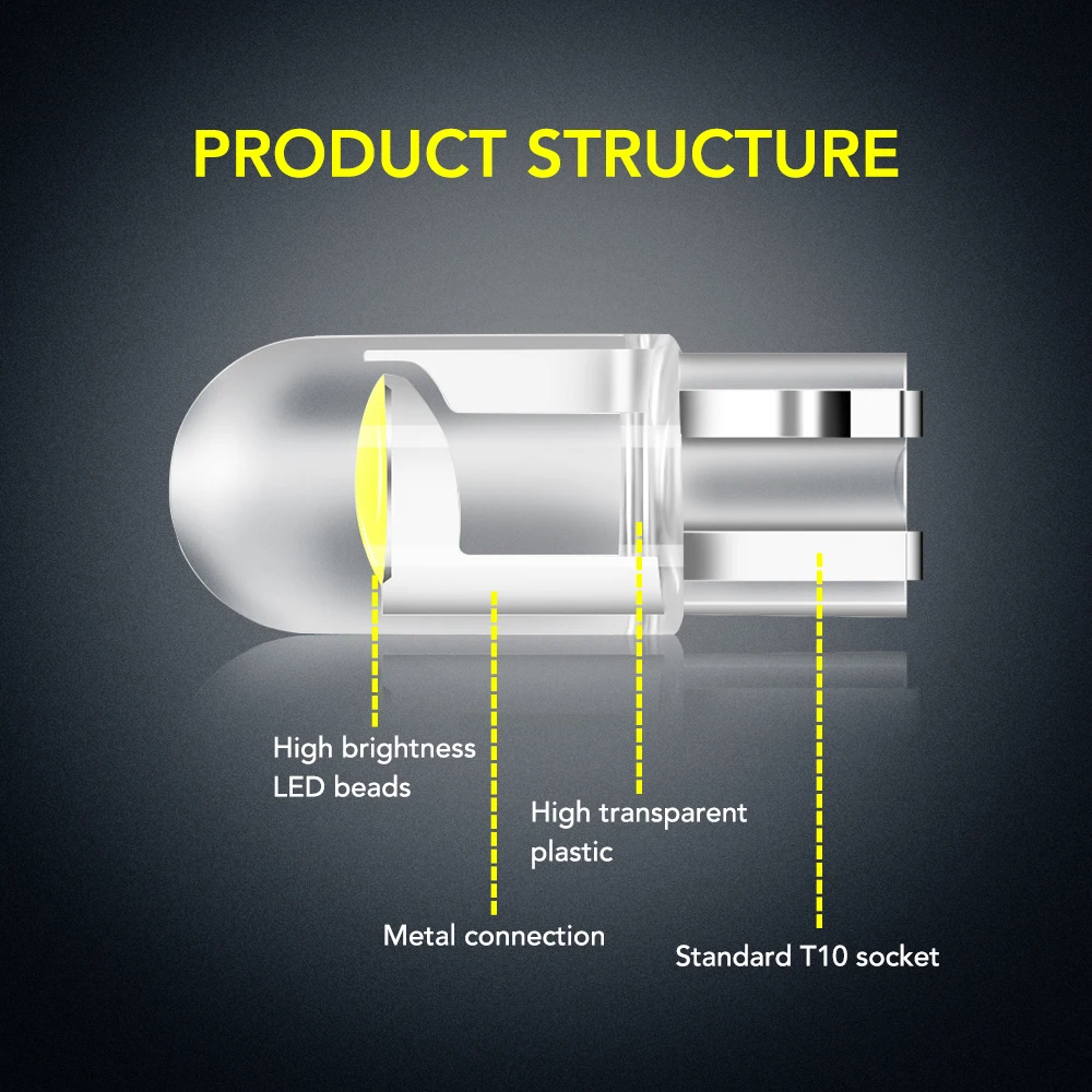 10 шт. Автомобильные светодиодные лампы T10 W5W COB для Peugeot 206...