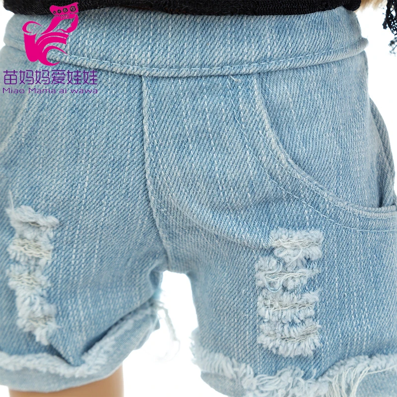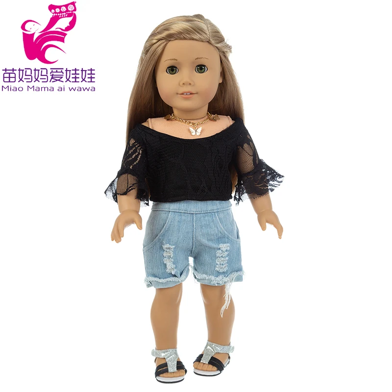 18-дюймовая кукольная белая майка для девочек, топ, рваные джинсовые шорты 43 см, одежда для новорожденных, Одежда для кукол, рубашка на бретелях, джинсовые брюки