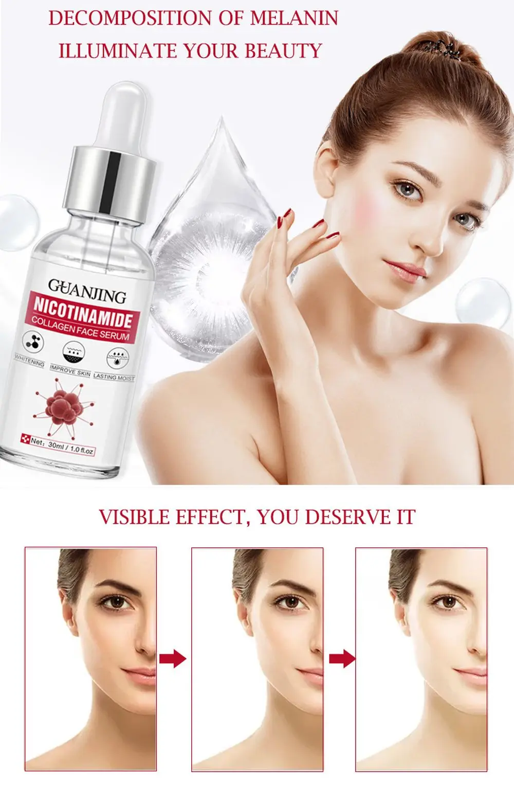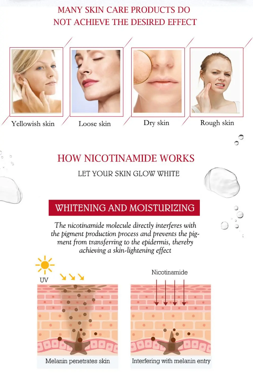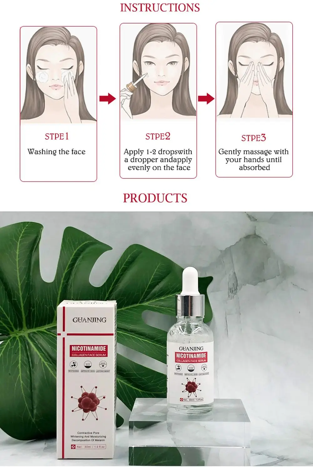 Никотинамид LAIKOU, сыворотка для лица, отбеливающая эссенция, увлажняющая, сужает поры, осветляющая сыворотка для лица, уход за кожей