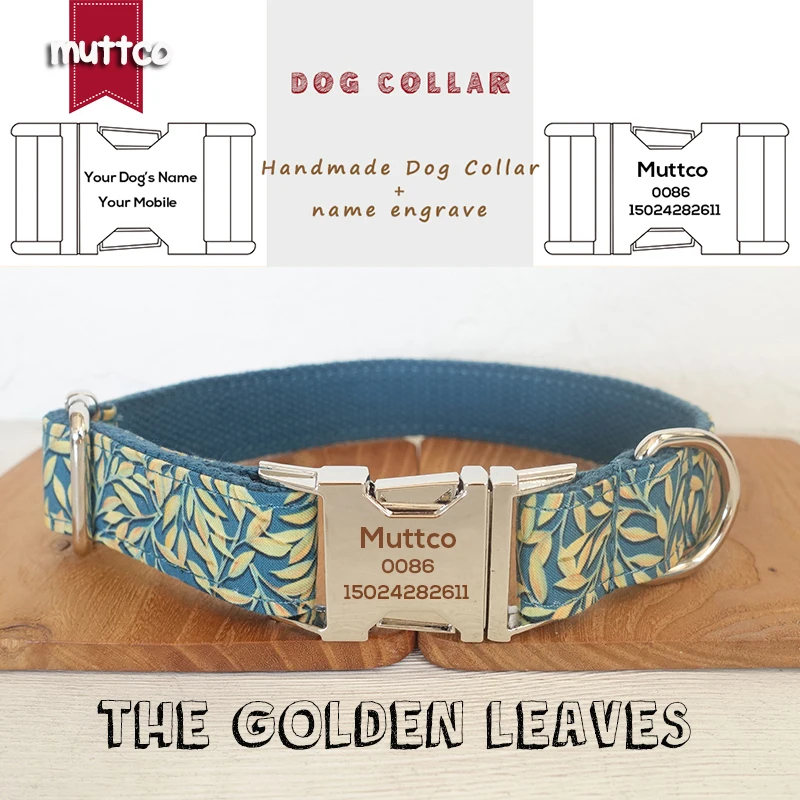 MUTTCOВыгравированный собачий ошейник для прогулок поводок для собак на заказ имя собакиАксессуары для собак с золотыми листьями для маленьких средних и больших собак 5 размеров UDC089