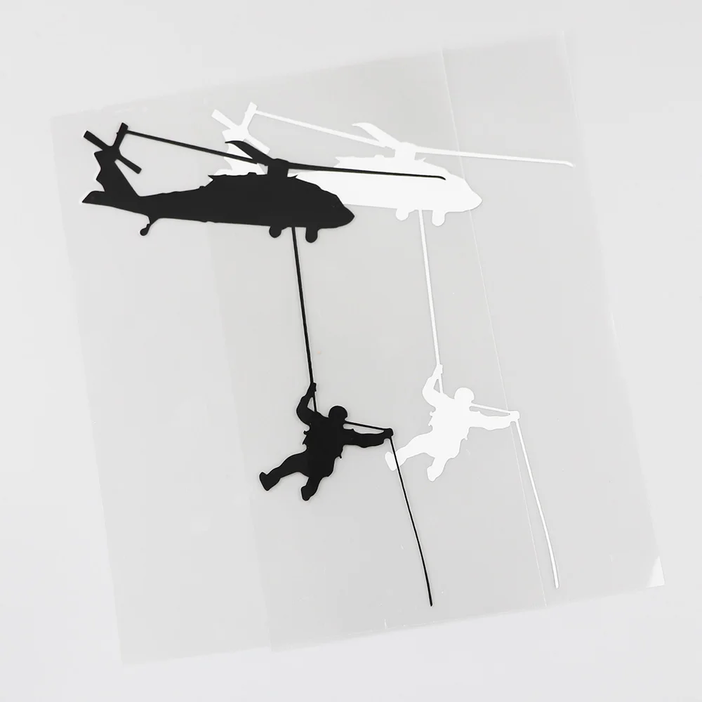 YJZT 10,8 см x 16,1 см крутой военный самолет, солдат, фотовиниловая наклейка для автомобиля, черныйсеребристый 8A-0756