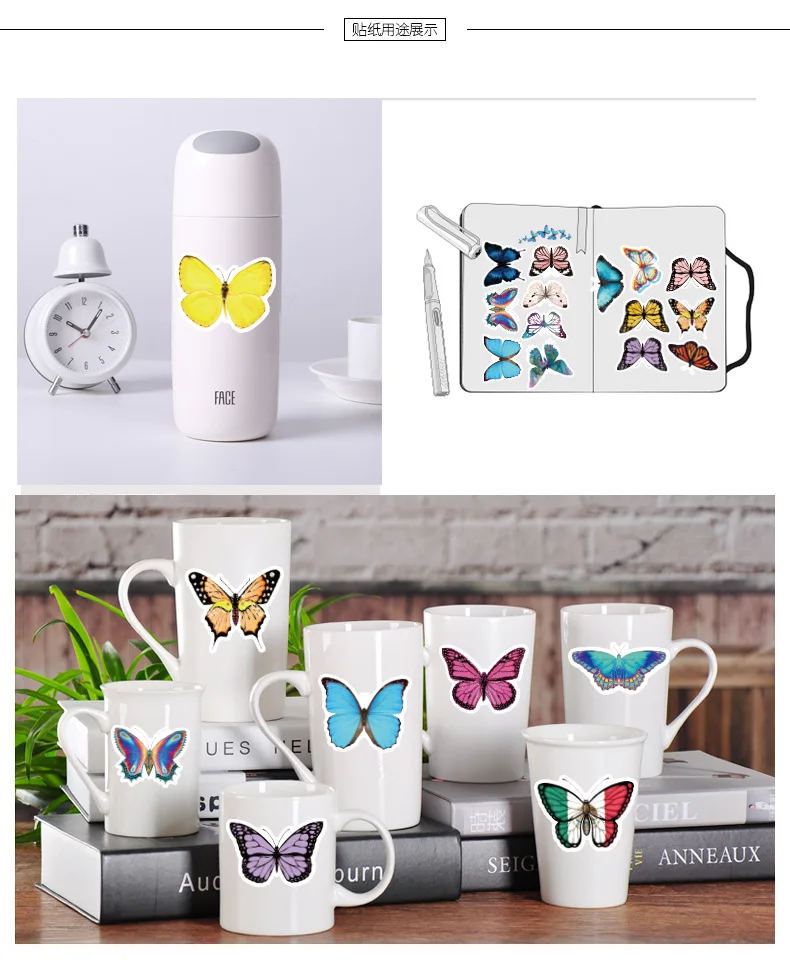 Стикеры в виде бабочек 103050 шт., милые красивые наклейки с животными, для скейтборда, гитары, чемодана, велосипеда, девочек, детские забавные игрушки